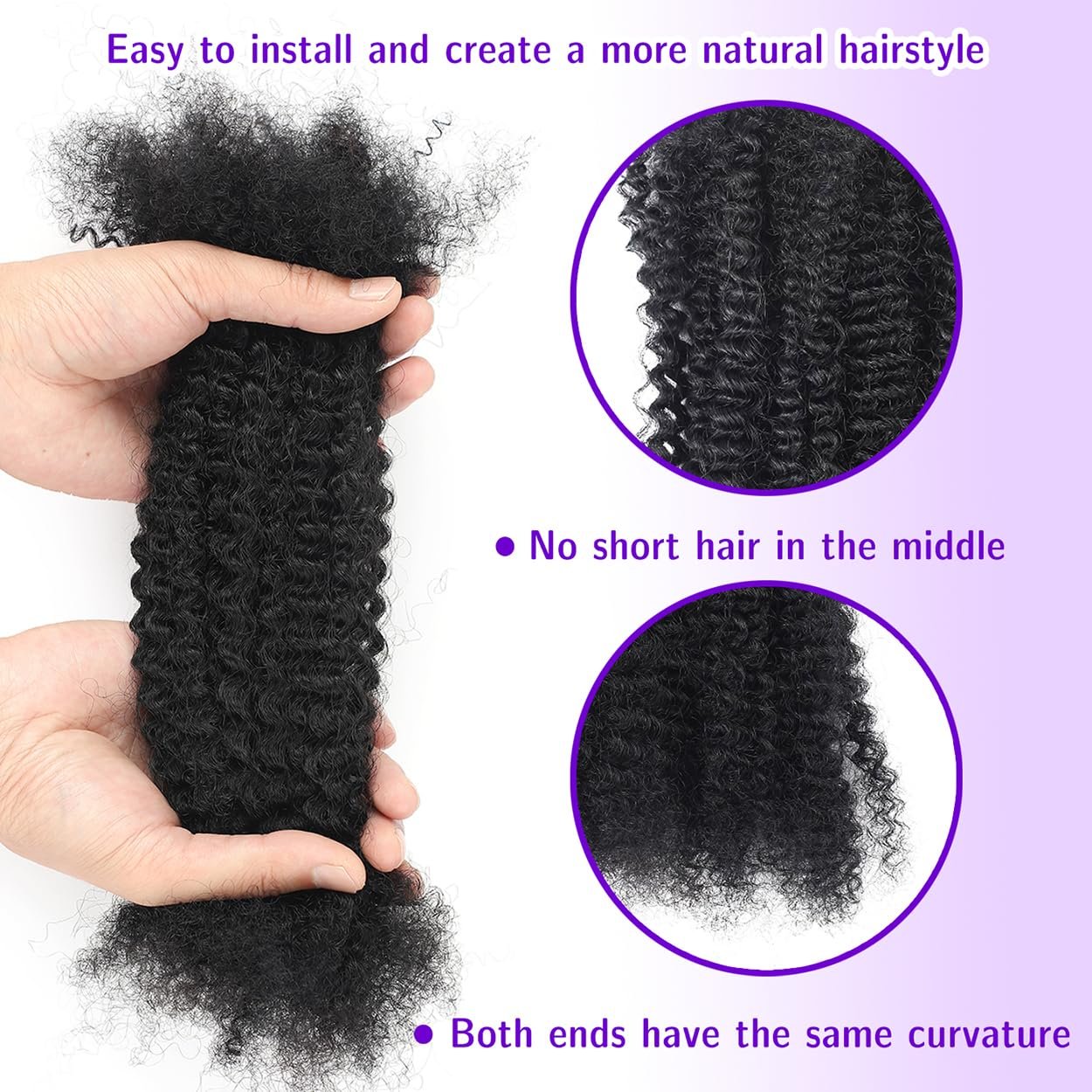 16 Inch afro kinky curly bulk human hair More convenient to use, end thickness is the same, There are no short hairs in the middle