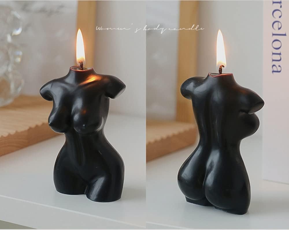 2PCS Body Shaped Candles, Female Body Candle Soy Candle Scented Candle Valentine’s Day Home Aesthetic Decoration Candle (White, Black)