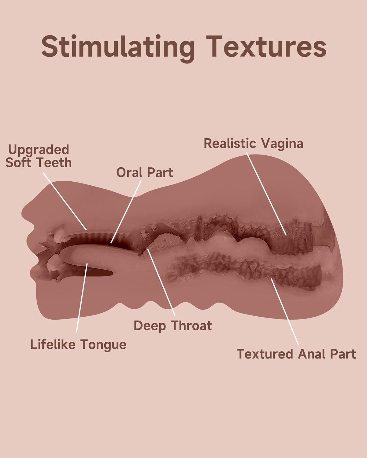 【3 In 1 Male Masturbator】This male sex toys experience vaginal, oral, and tactile sensations in one premium device. With three distinct holes, each designed with different levels of tightness, users can enjoy a variety of realistic sensations. The 1.15lb weighted sex doll is engineered to deliver authentic flesh-like simulation, enhanced by 360° pressure technology for long-lasting pleasure. No need for multiple toys – complete satisfaction guaranteed for blowjob