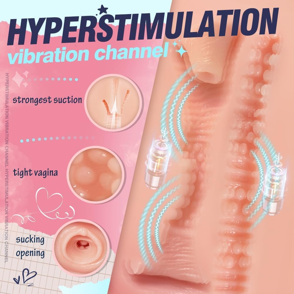 4.1 LB Male Masturbator Sex Doll with Virgin Tight Labia, 2 Hole Realistic Sex Toy with Strong Suction Channel, Goyha Pocket Pussy Sex Toy for Men Masturbation (Vibrating)
