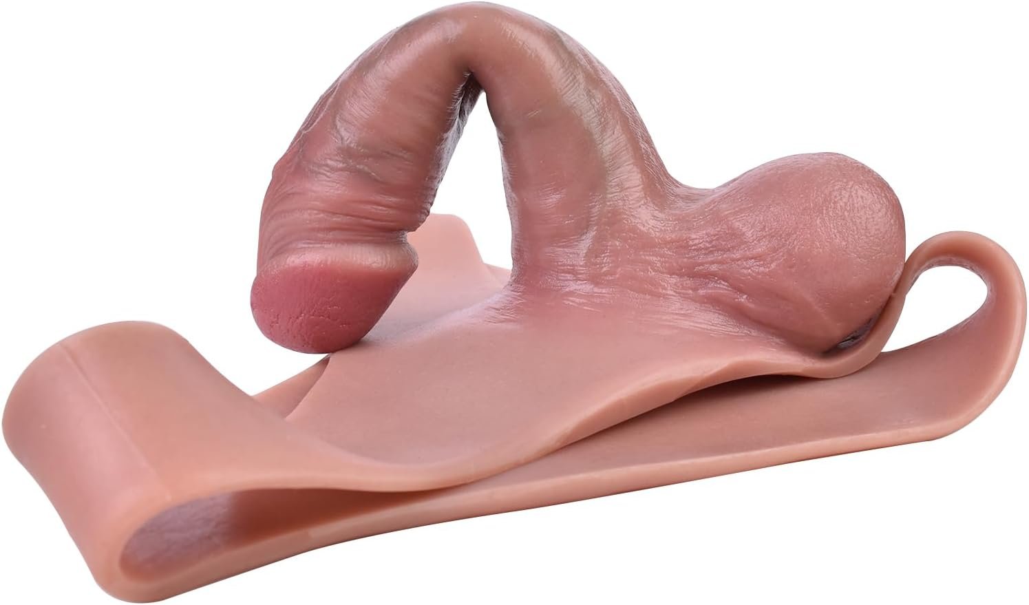 7.5 inch Strapless Strap on Dildo Hollow Underwear Dildo Hollow Silicone Sleeve with Textures, Silicone Wearable Elastic Panty Dildo Adult Sex Toy for Men Couples, Skin Color