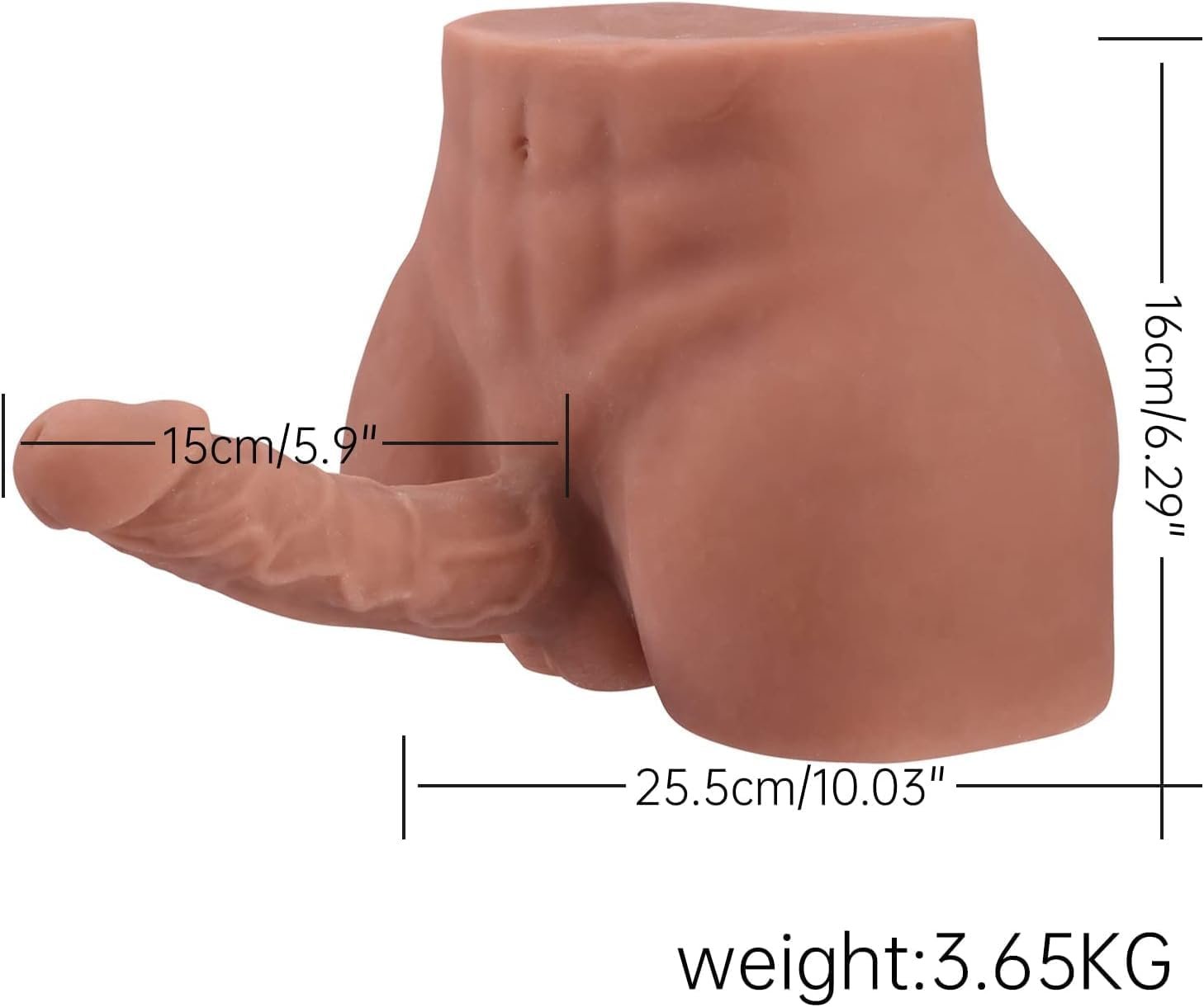 【Perfect size】 This male torso inflatable doll features a compact size of 10 x 8.6 x 10.2 inches and weighs 7.92 pounds, offering a realistic experience. The insertable penis measures 7.1 inches in length with a 1.8-inch diameter, making it the ideal gift for yourself or a loved one.