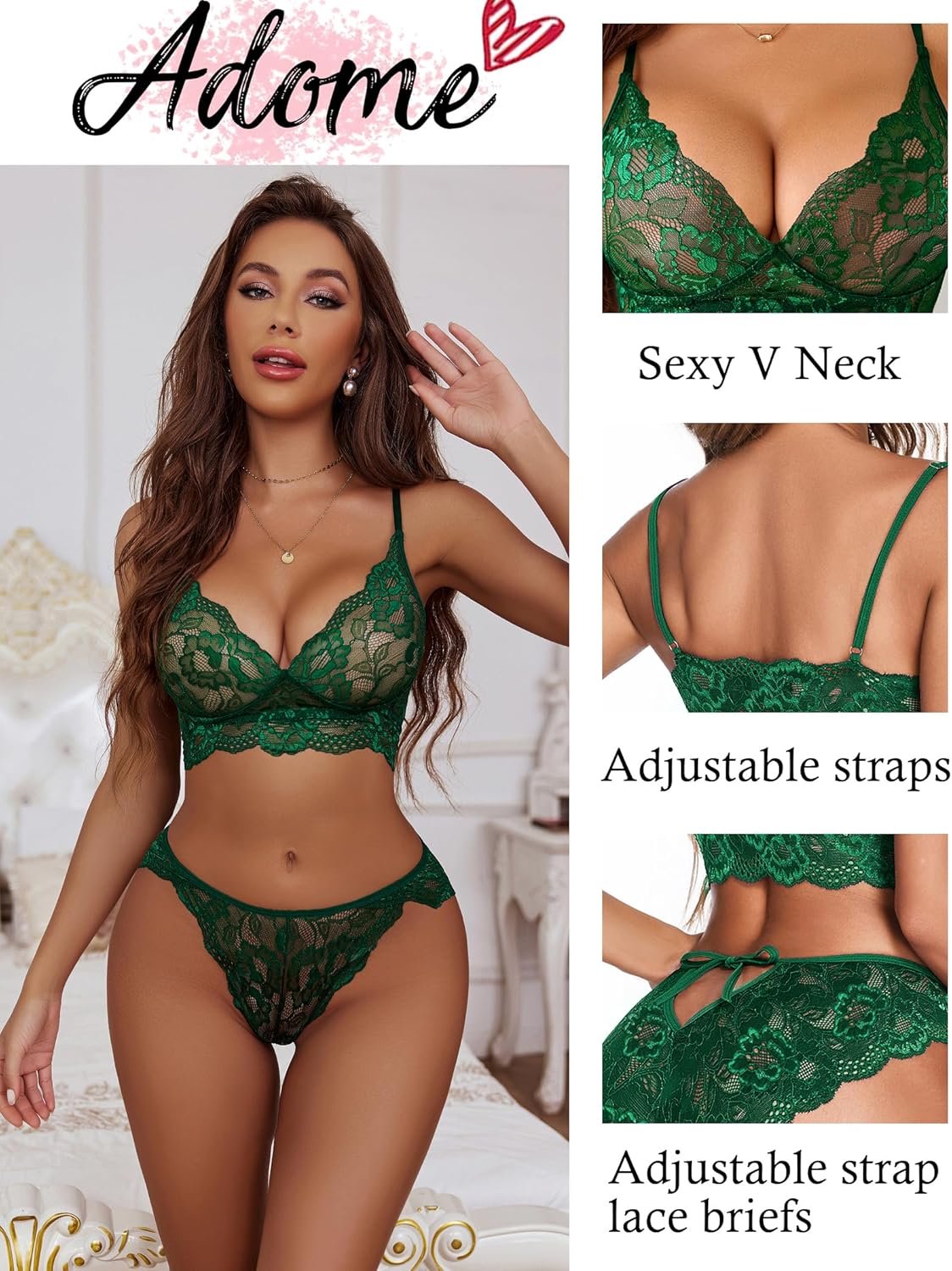 ADOME Women’s Lace Lingerie Bra and Panty Set Strappy Babydoll Bodysuit S-XXL