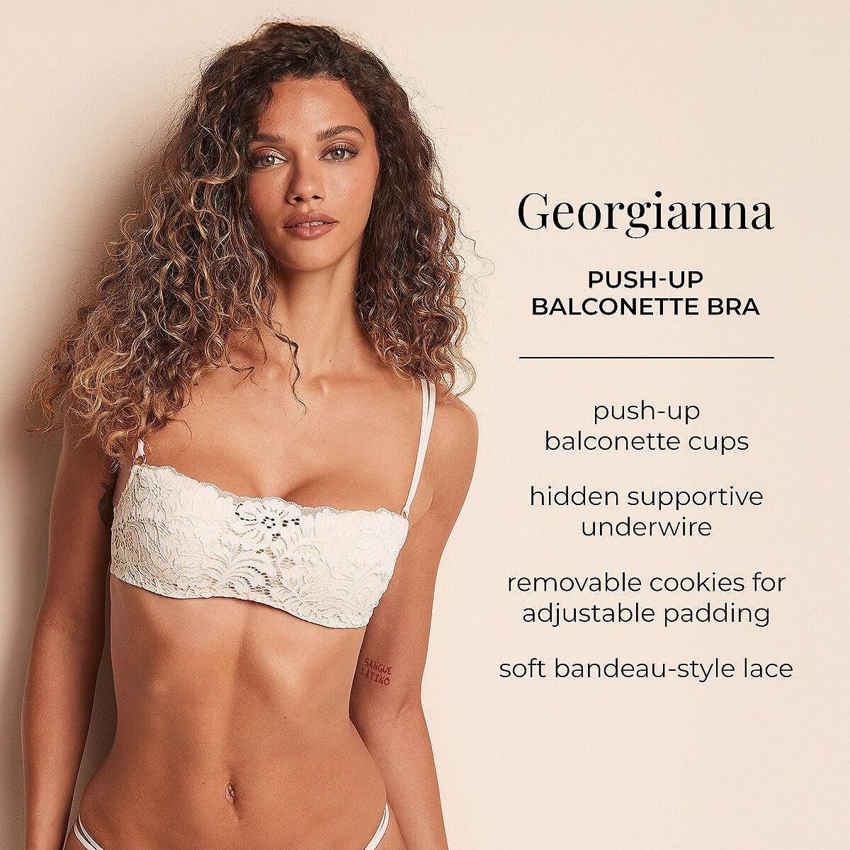Adore Me Georgianna Push-Up Balconette Bra – Lace Underwire Bra with Removable Padding & Double Strap Detail – Sizes 30A-38DD