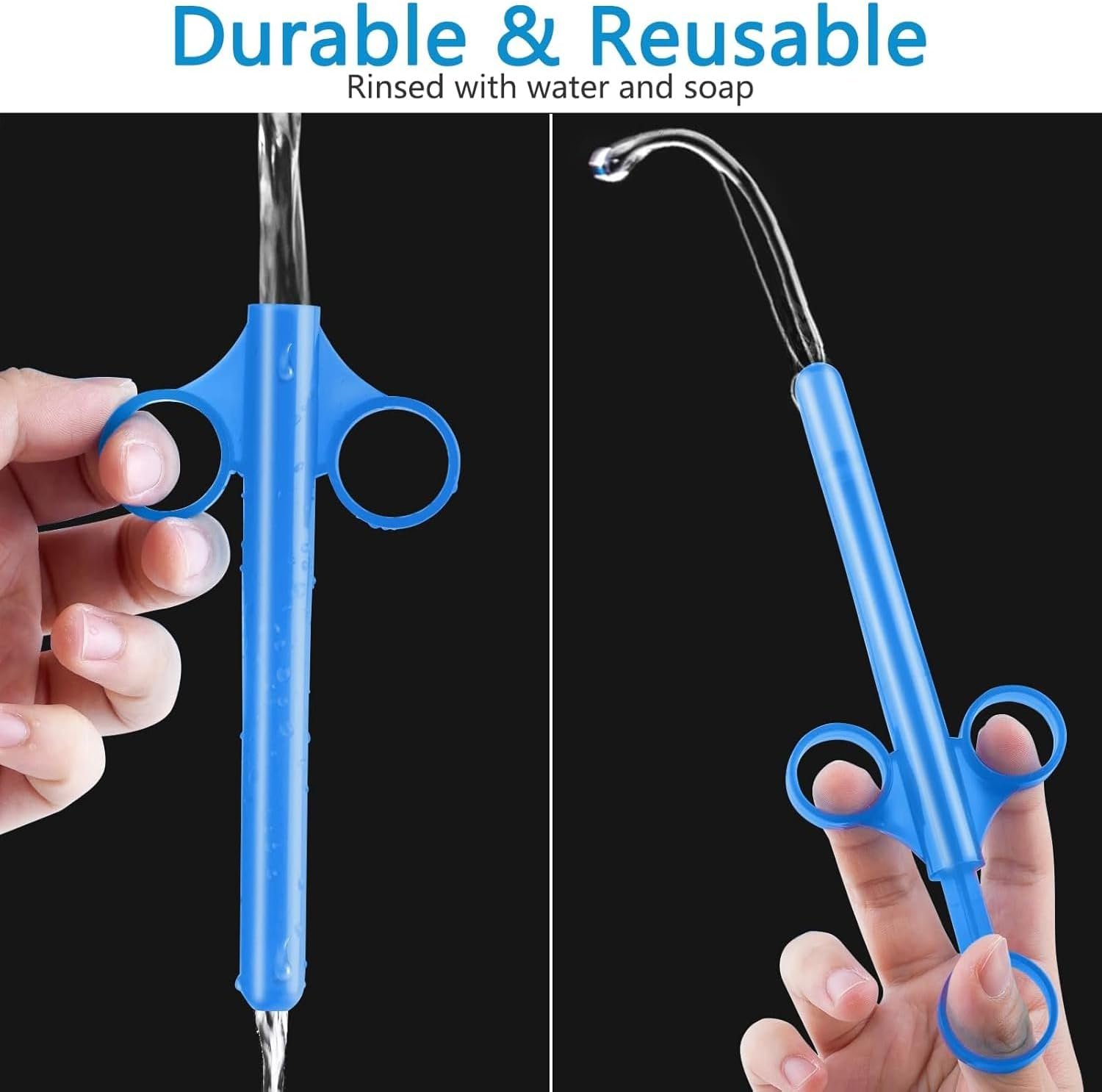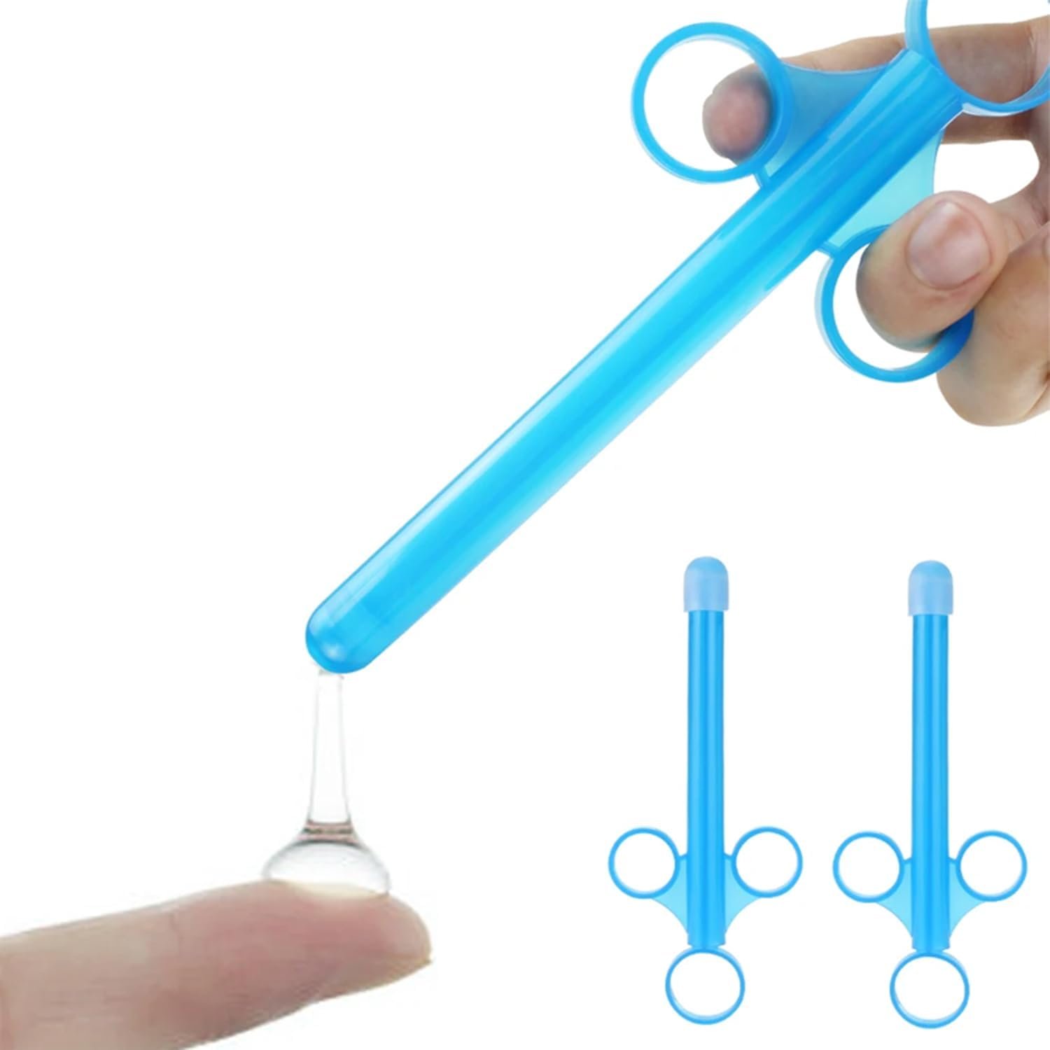 2pcs Anal lube applicator syringe with precise scales, 6.5” lube injector syringe reusable long, anal lube shooter with air-proof silicone cap, silicone lube applicator for men women couples. This lube injector container allows you to dispense the perfect amount of lube every time. No more waste. Load it up and shoot it out. Easy for vaginal & anal lube syringe.