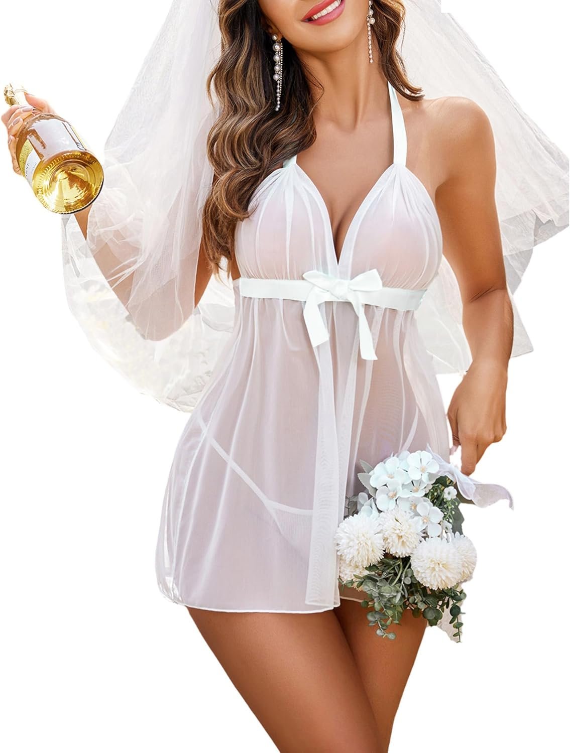 Avidlove Lingerie for Women Lace Babydoll Chemise Negligees Sexy Exotic Nightgowns Halter Nighties Sheer Mesh Nightwear