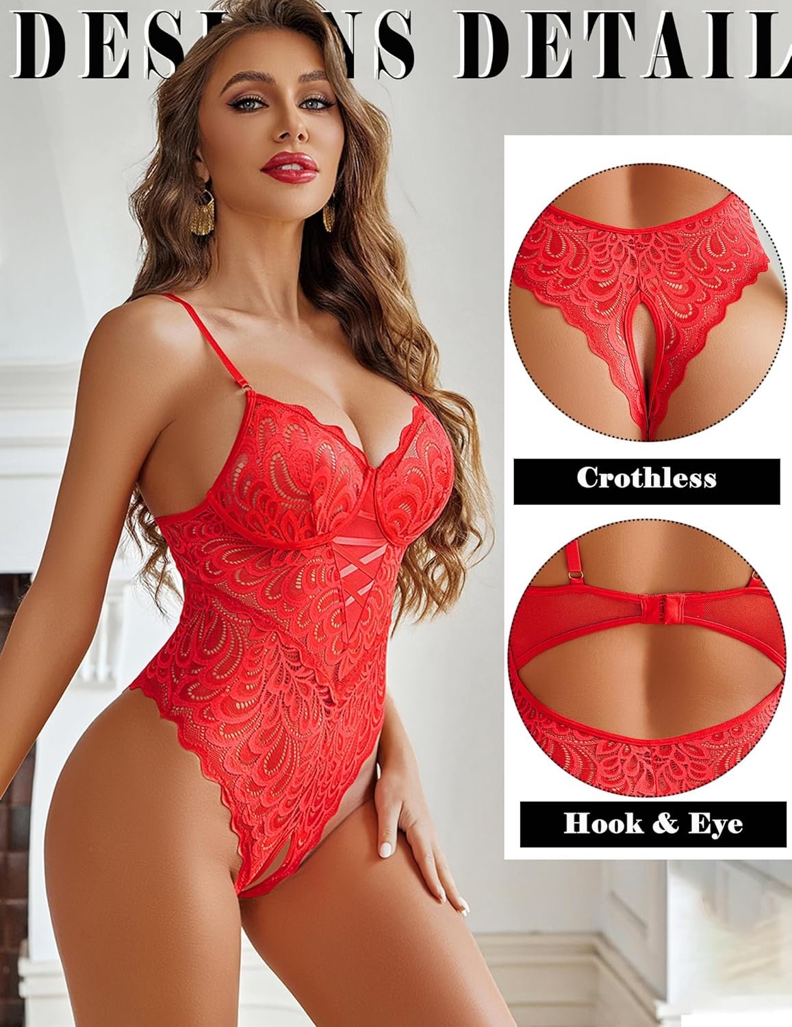Avidlove Lingerie Bodysuit for Women Floral Lace Teddy One Piece Babydoll
