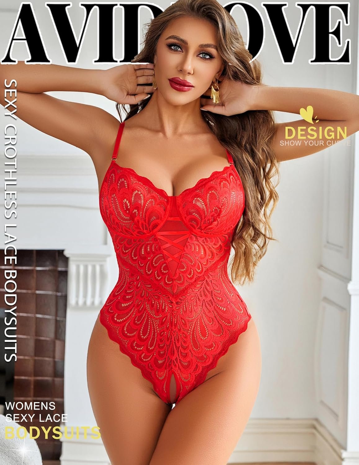 Avidlove Lingerie For Women Lace Bodysuits Deep V Teddy One Piece Mini Babydoll