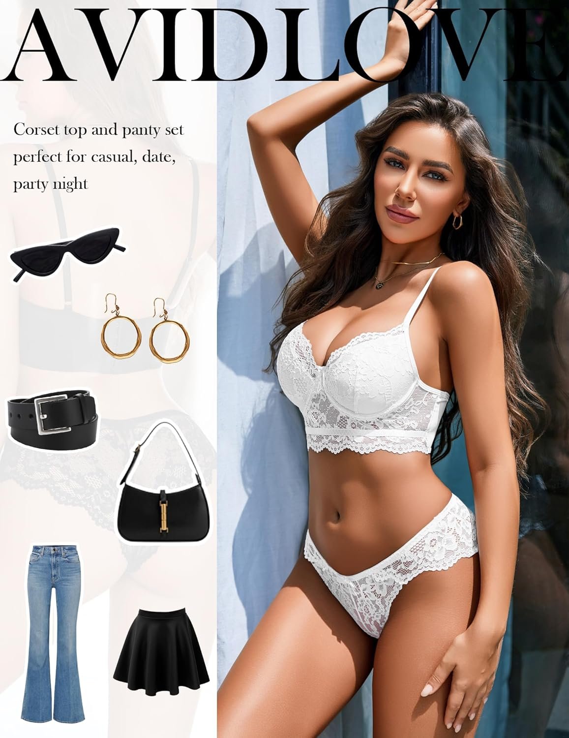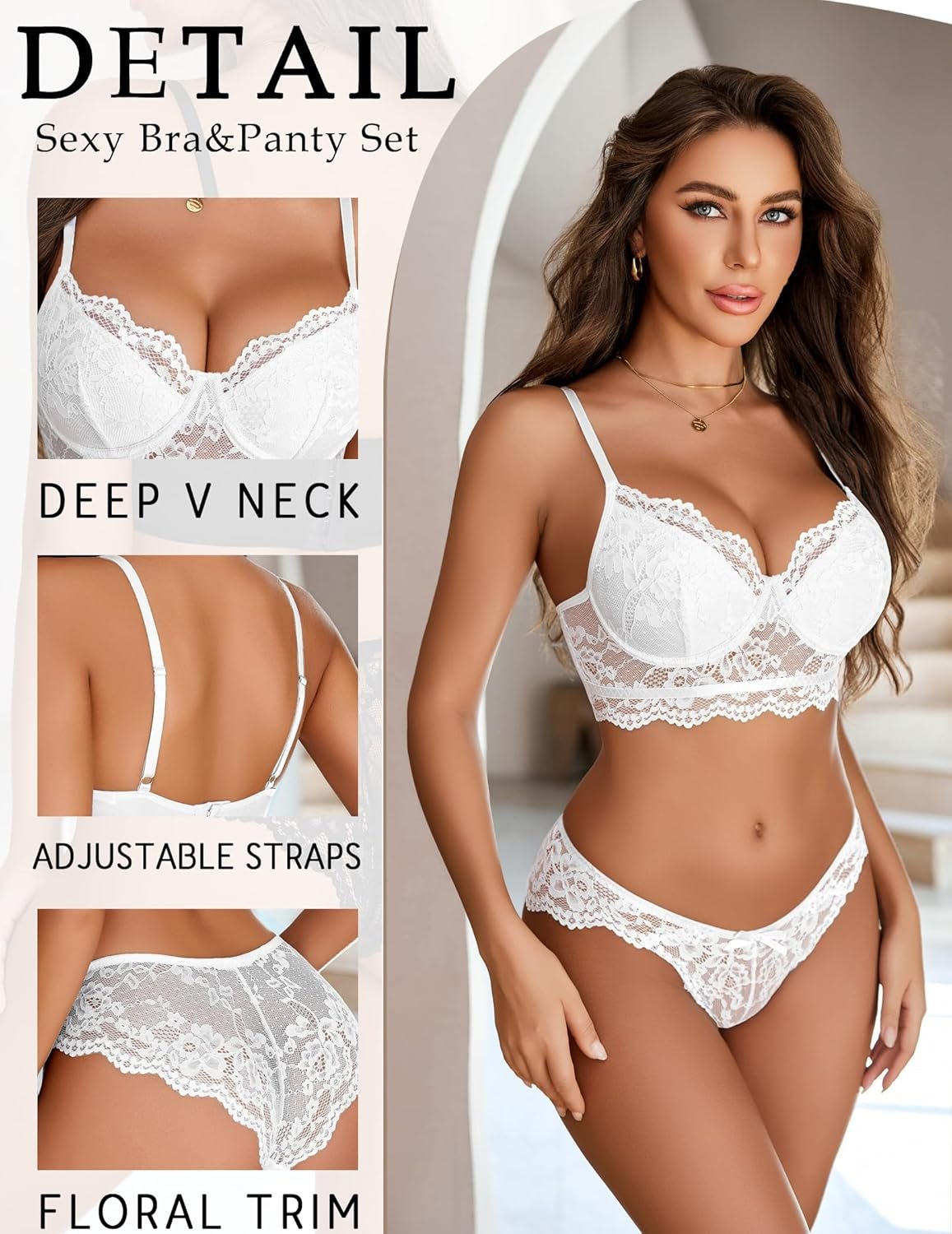Avidlove Lingerie for Women Lace Strappy Underwear V Neck Bra and Panty Sets 2 Piece Bralette Outfits
