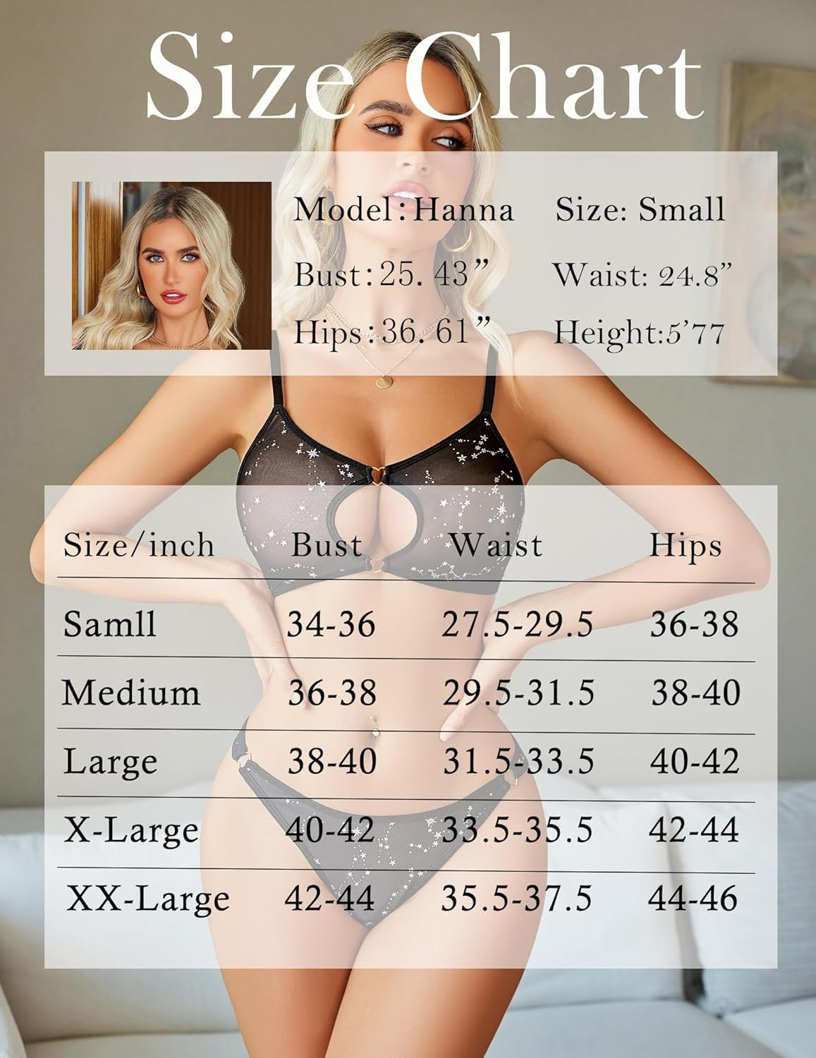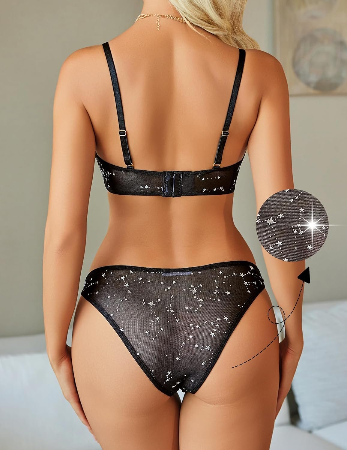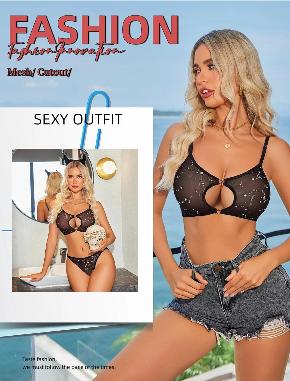 Avidlove Mesh Lingerie Set for Women Cut Out Sexy Bra and Panty Sets 2 Piece Sheer Lingerie