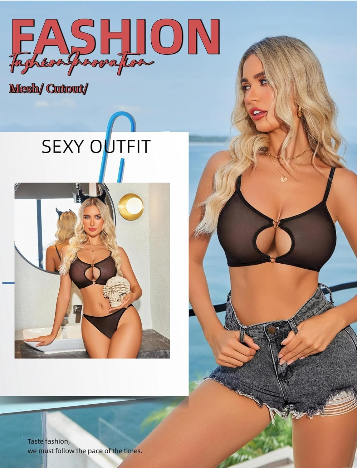 Avidlove Mesh Lingerie Set for Women Cut Out Sexy Bra and Panty Sets 2 Piece Sheer Lingerie