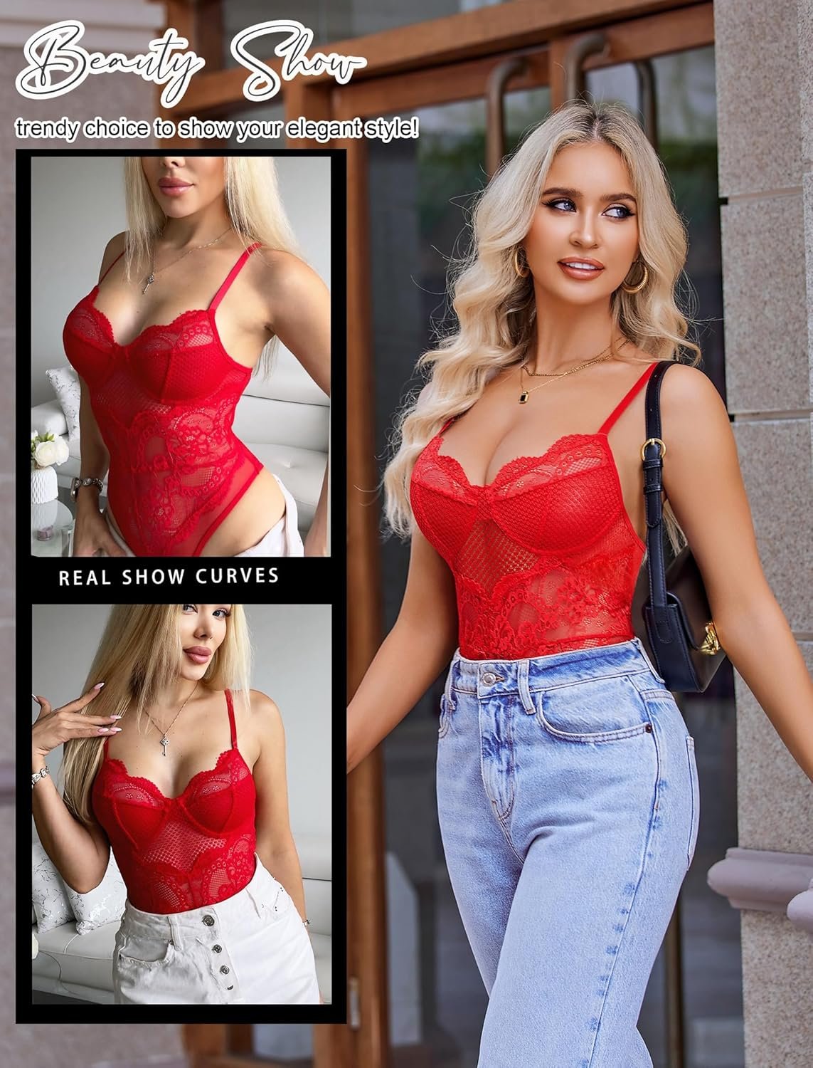 Avidlove One Piece Lingerie for Women Sexy Lace Bodysuit Cut Out Babydoll V Neck Teddy Mini Body suit