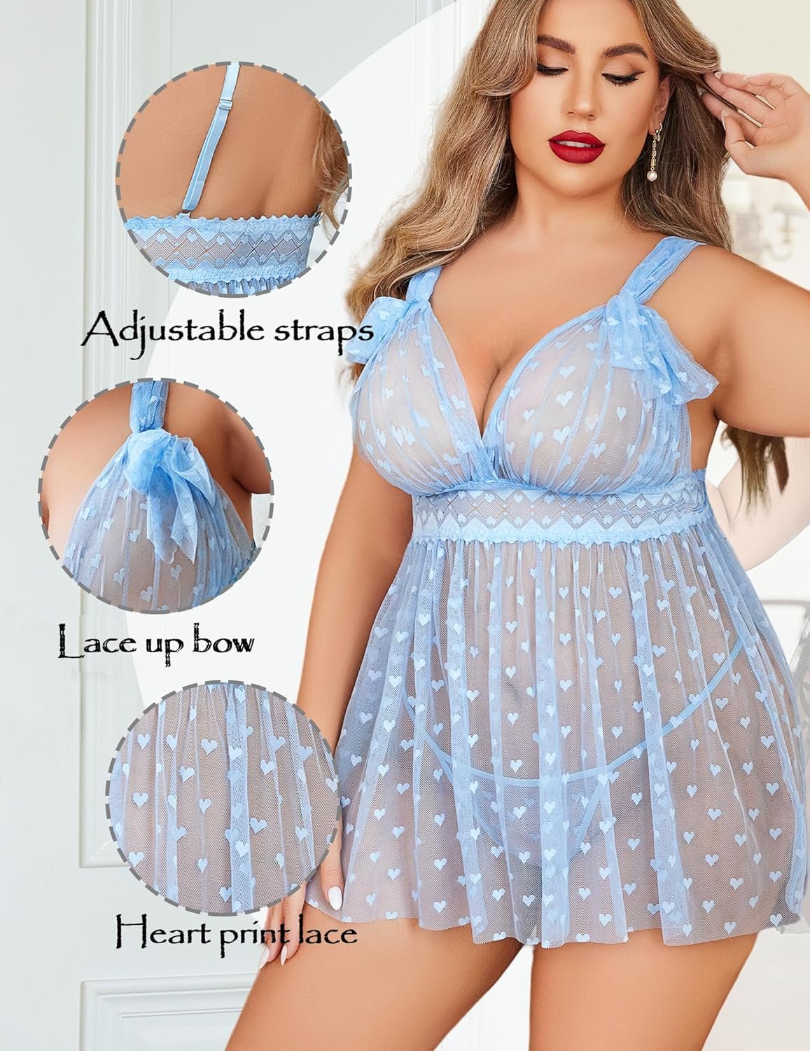 Sheer mesh lace babydoll plus size lingerie for women red lingerie valentine's nightgownSheer mesh lace babydoll plus size lingerie for women red lingerie valentine's nightgown