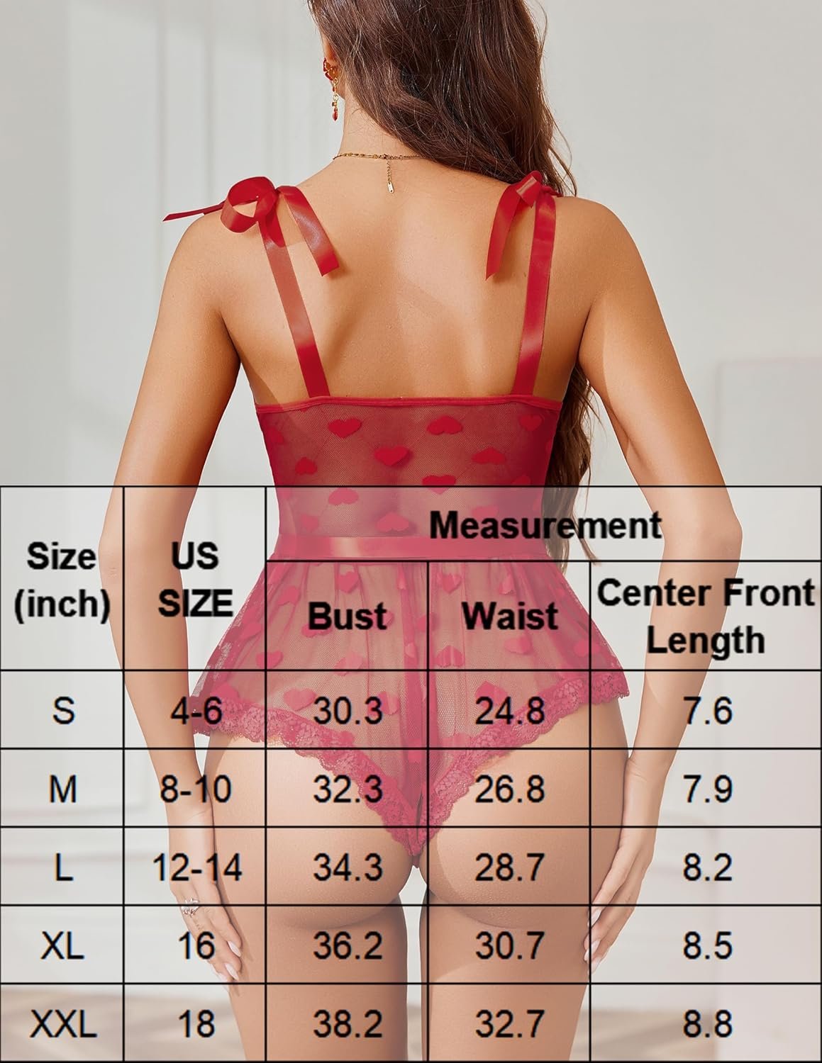 Item model number ‏ : ‎ Heart Print Sheer Mesh Lace Bodysuit