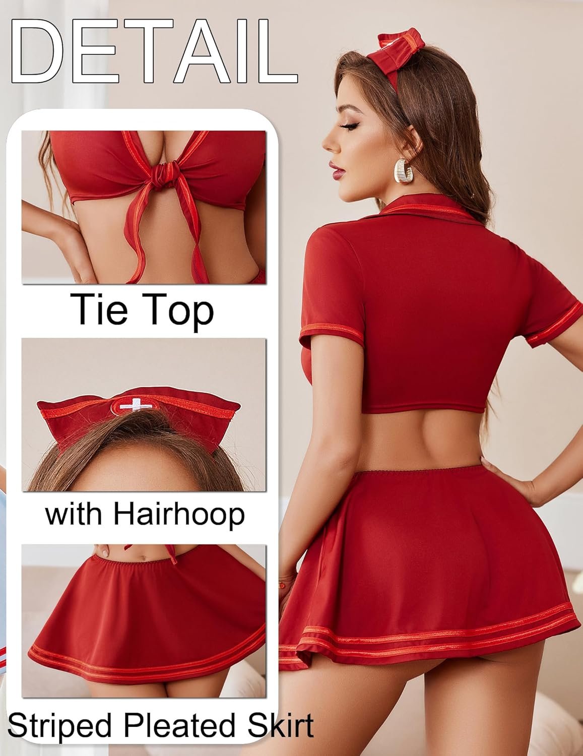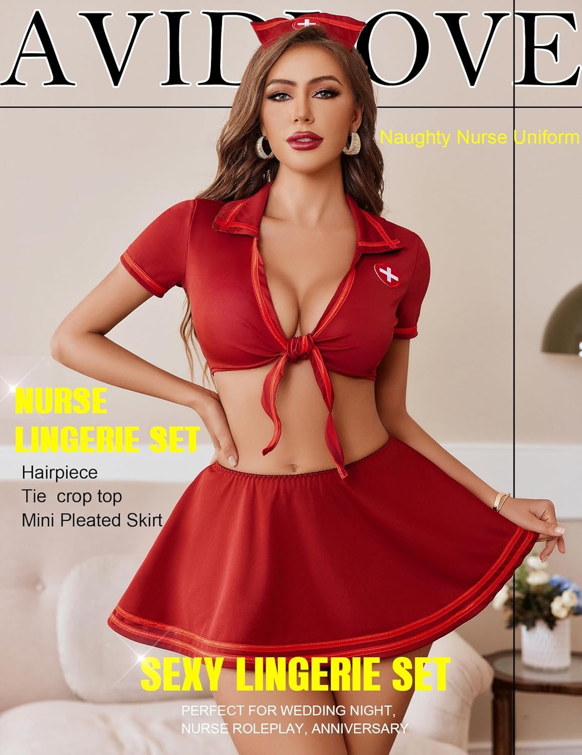 Avidlove Sexy Nurse Lingerie for Women Roleplay Lingerie Set Nurse Cosplay Outfits with Tie Top and Mini Pleated Skirt Set