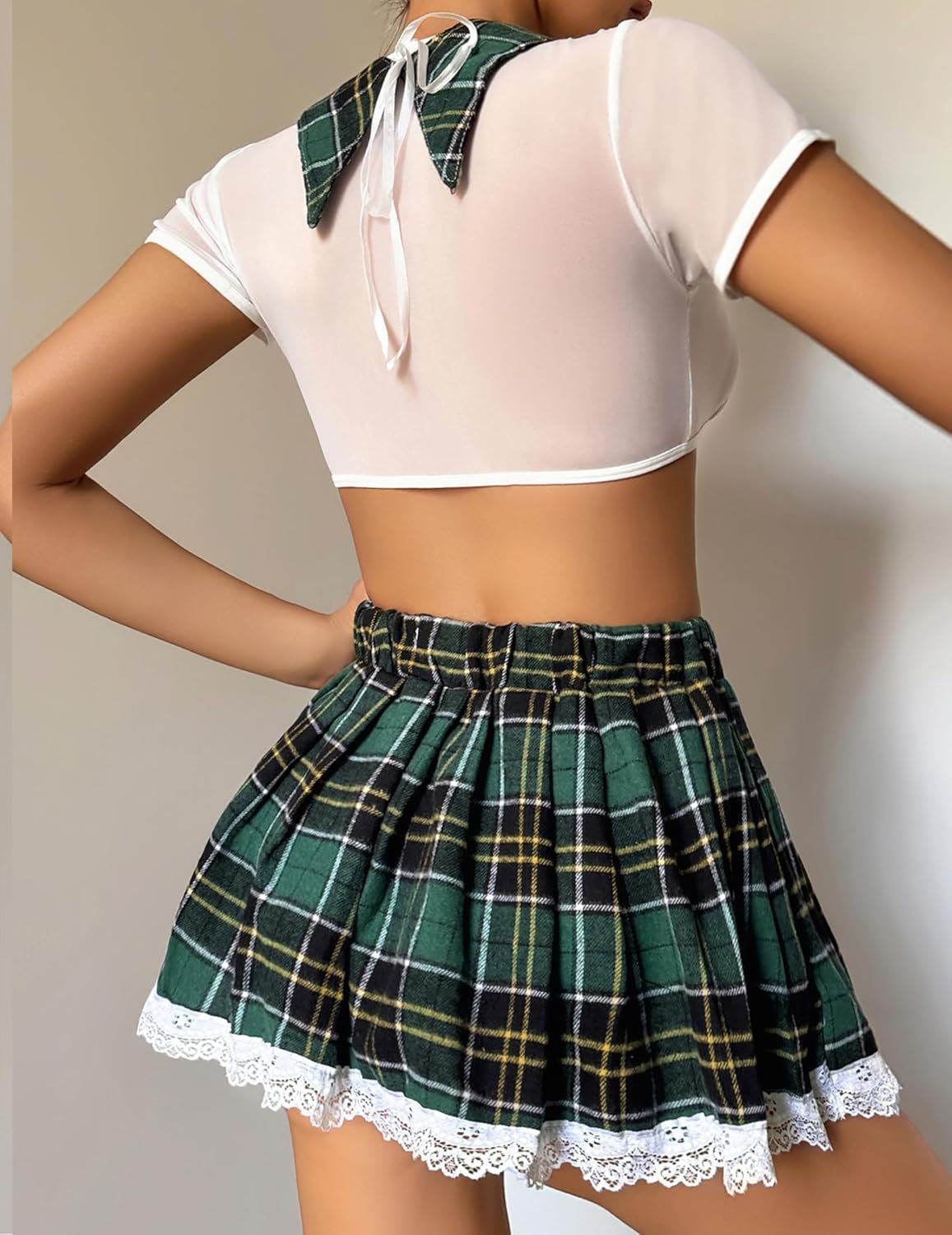 Avidlove Sexy School Girl Lingerie for Women Student Outfits Roleplay Lingerie Set with Plaid Mini Skirt