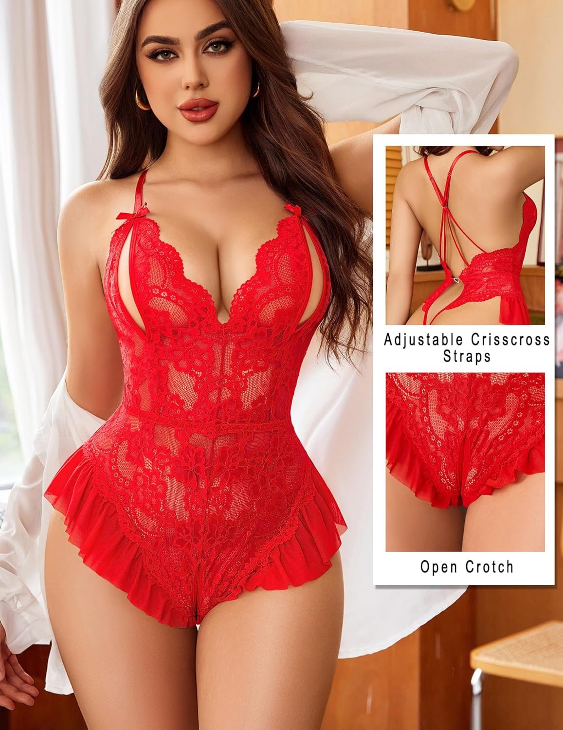 Avidlove Teddy Lingerie for Women Sexy Cut Out Lace Bodysuit One Piece Criss Cross Backless Mini Babydoll