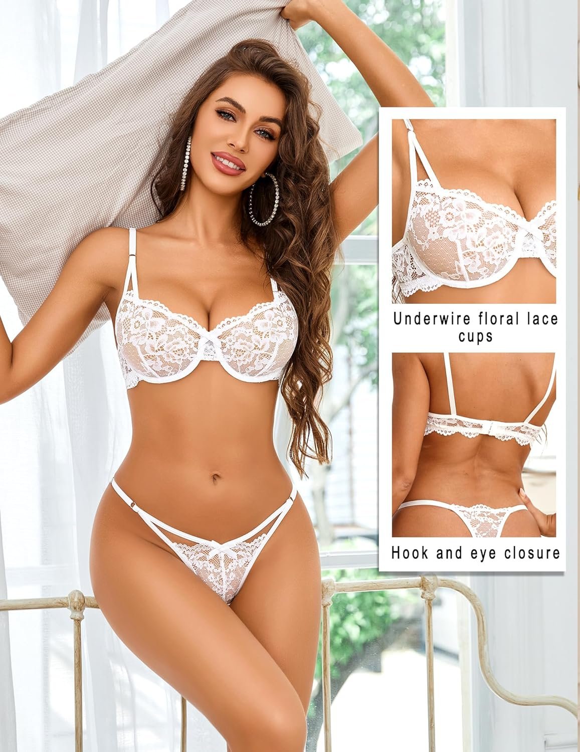 Avidlove Underwire Lingerie for Women Sexy Floral Lace Bra and Panty Two Piece Matching Sets