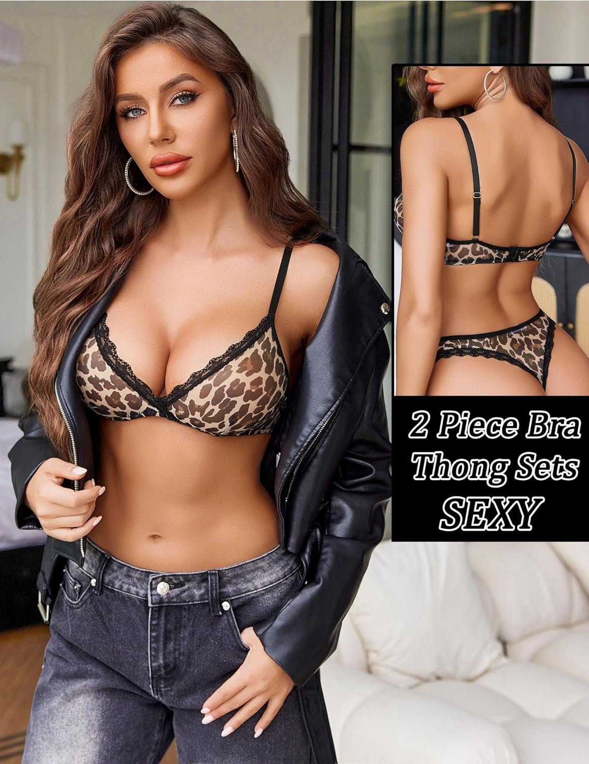 Sexy leopard print 2 piece: Soft material & slightly stretchy