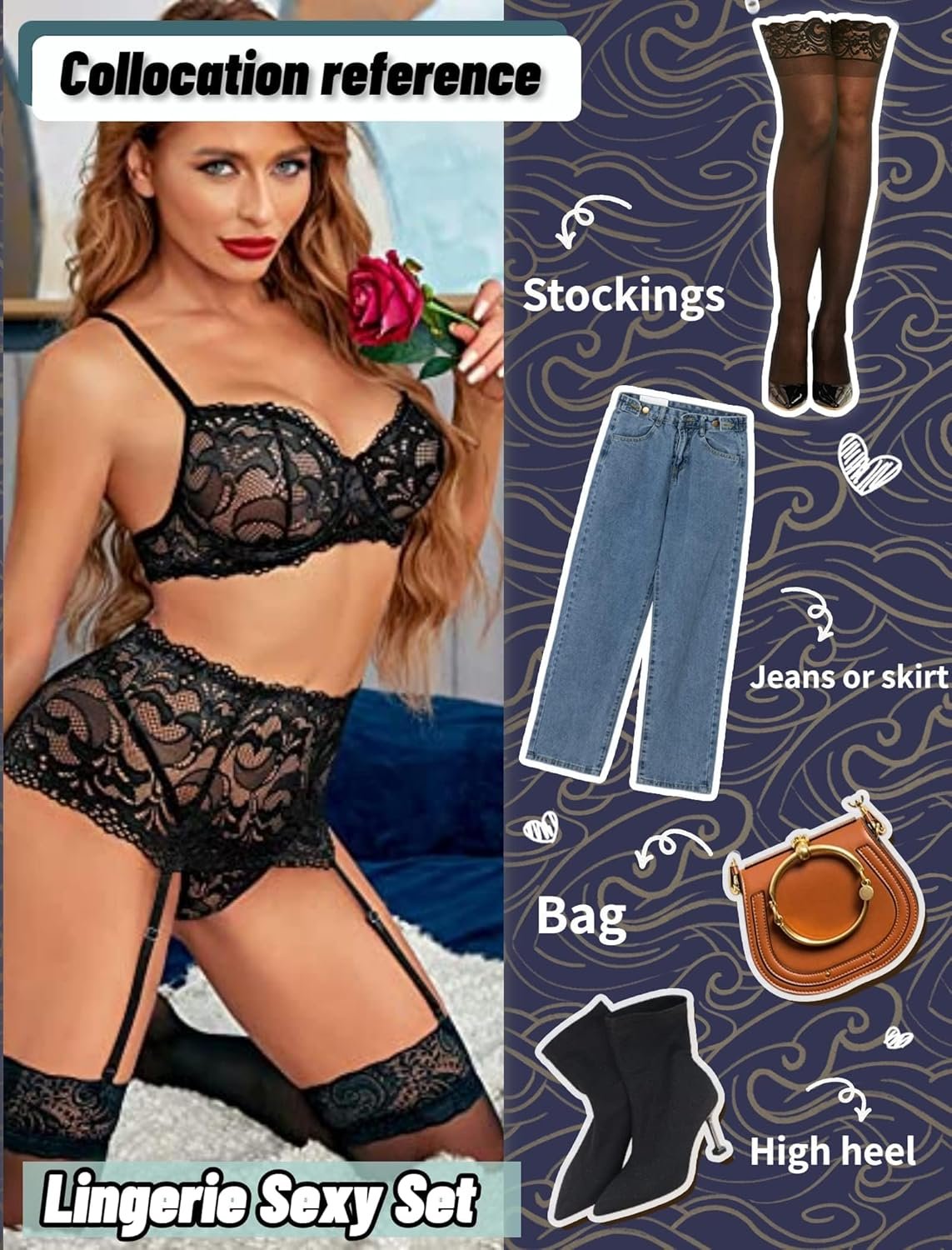 Avidlove Women Lingerie Set High Waisted Underwire Lingerie With Garter Belt Lace Babydoll
