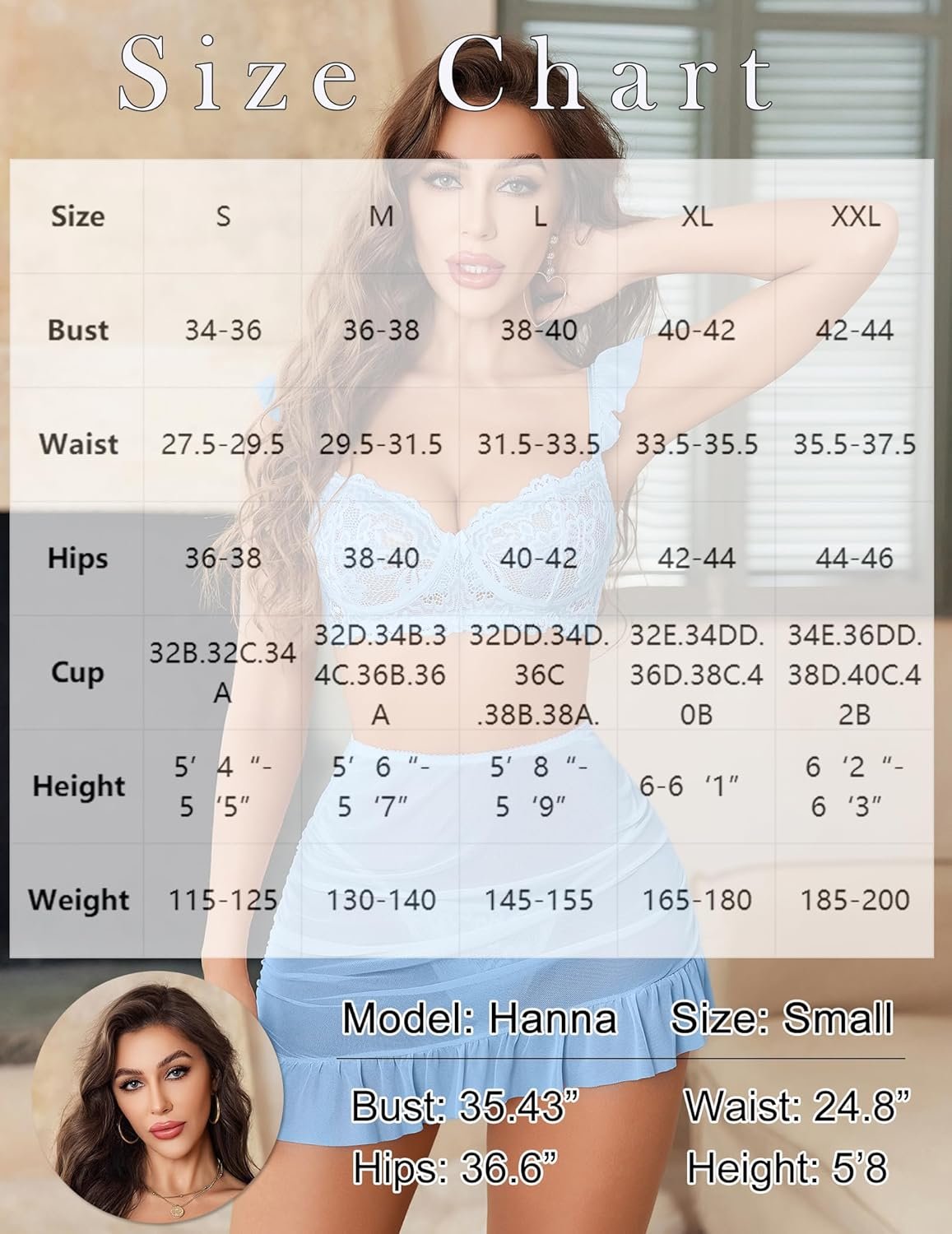 Avidlove Women Lingerie Set Lace Skirt and Bra 3 Piece Lingerie Set Chemise Ruffle Hem Sleepwear