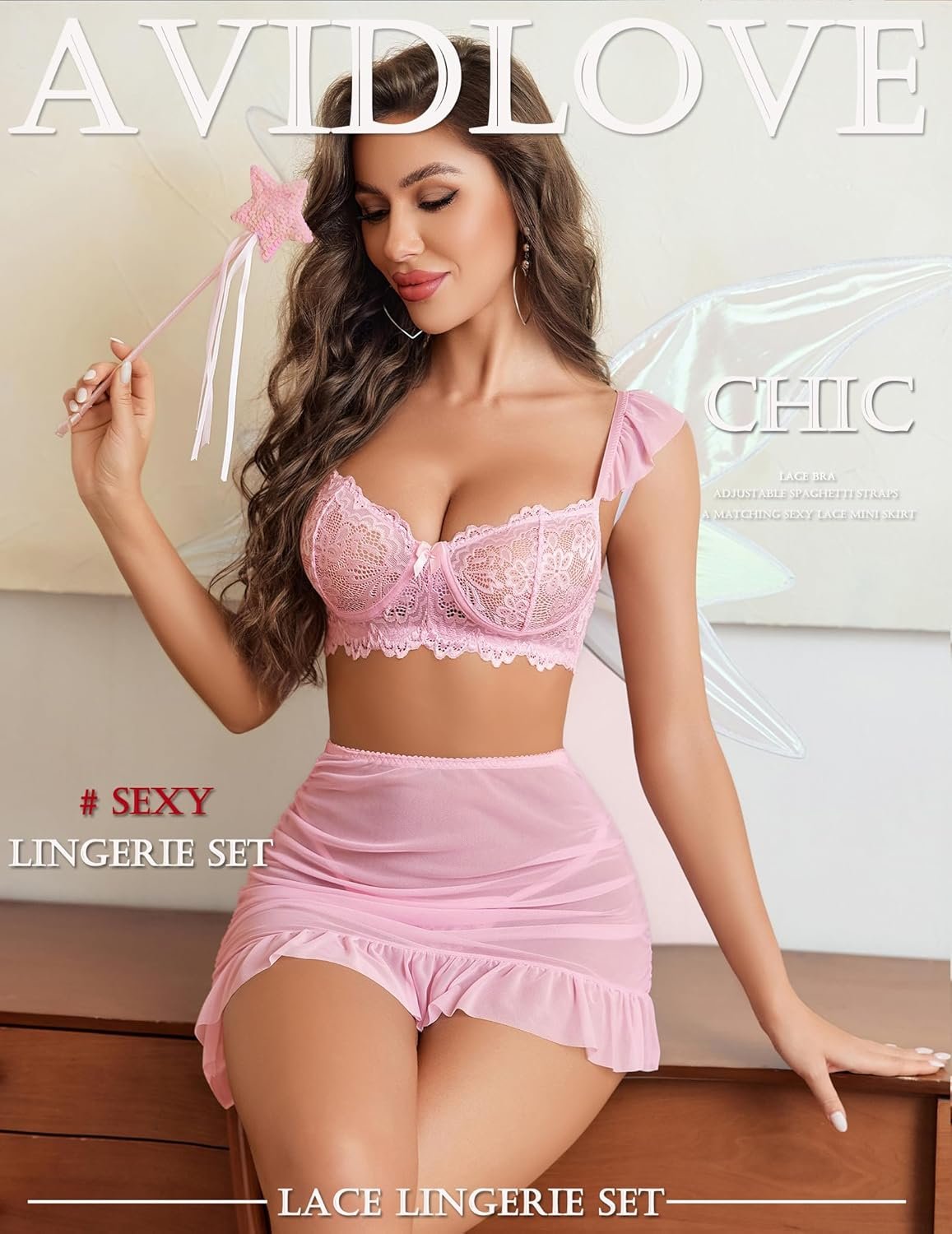 Avidlove Women Lingerie Set Lace Skirt and Bra 3 Piece Lingerie Set Chemise Ruffle Hem Sleepwear