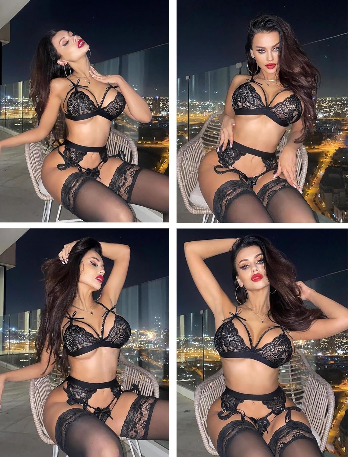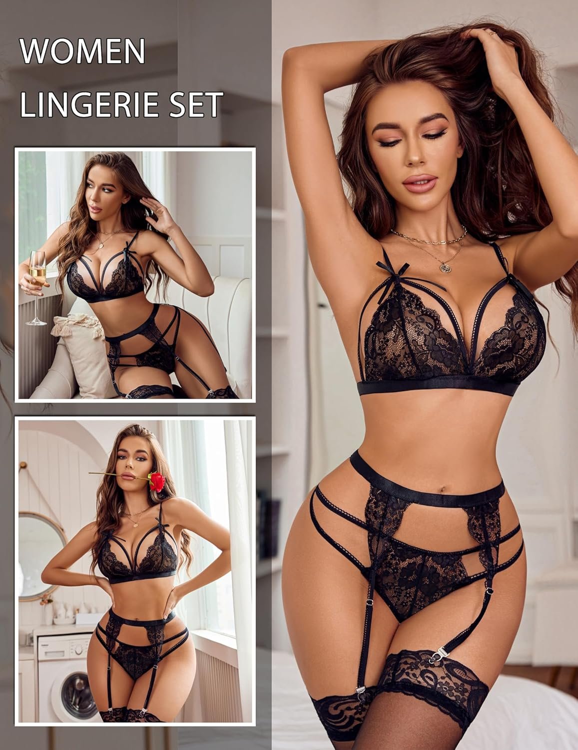 Avidlove Women Lingerie Set with Garter Belts Black Lingerie Set Boudoir Shoot Lingerie