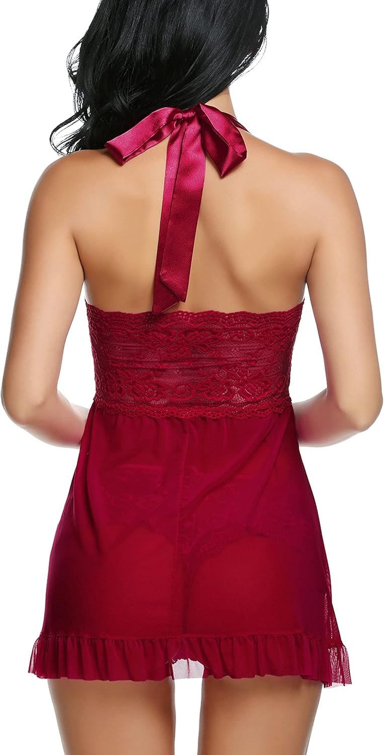 Avidlove Women Lingerie Sexy Open Front Lace Babydoll Dress with Thong Halter Mesh Nightgown XS-5XL