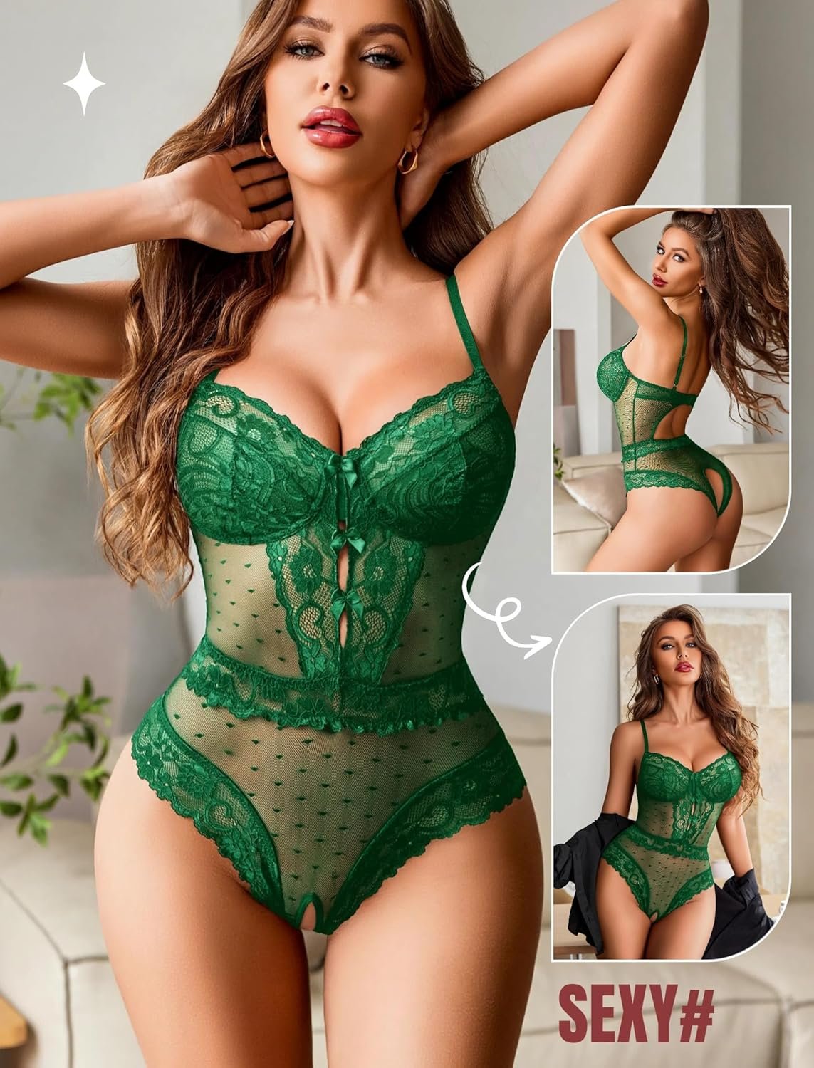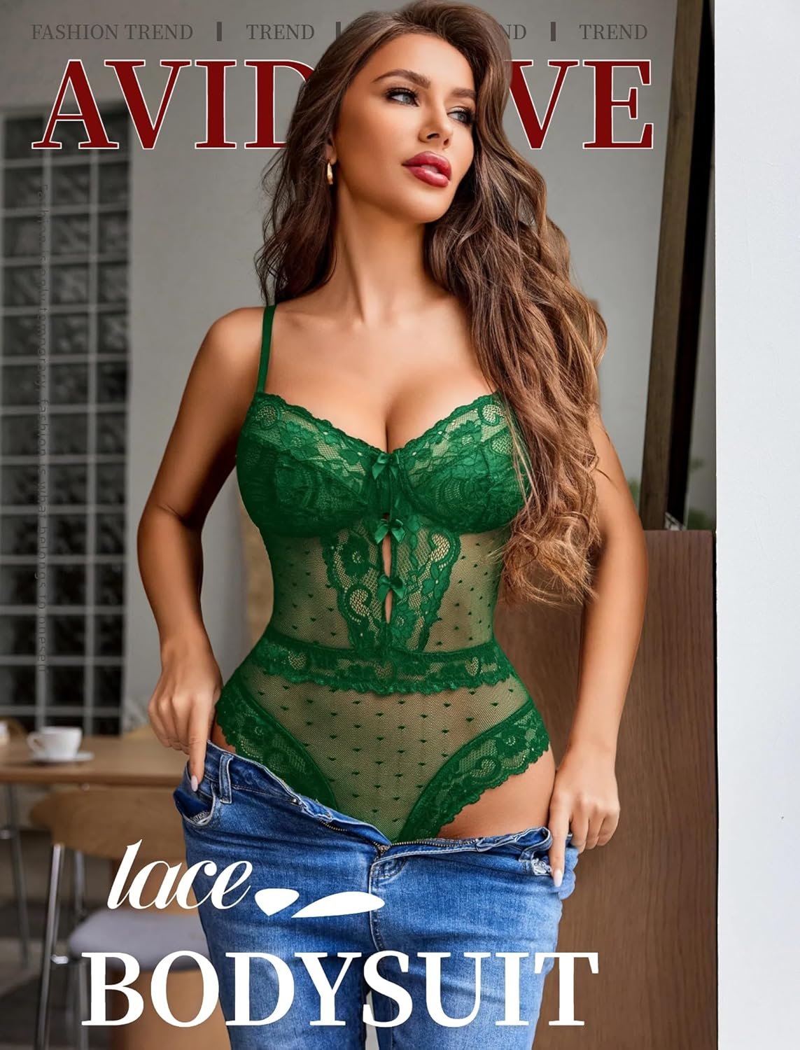 Avidlove Women Sexy Lingerie Sheer Lace Bodysuit V Neck Teddy Lingerie One Piece Mini Babydoll