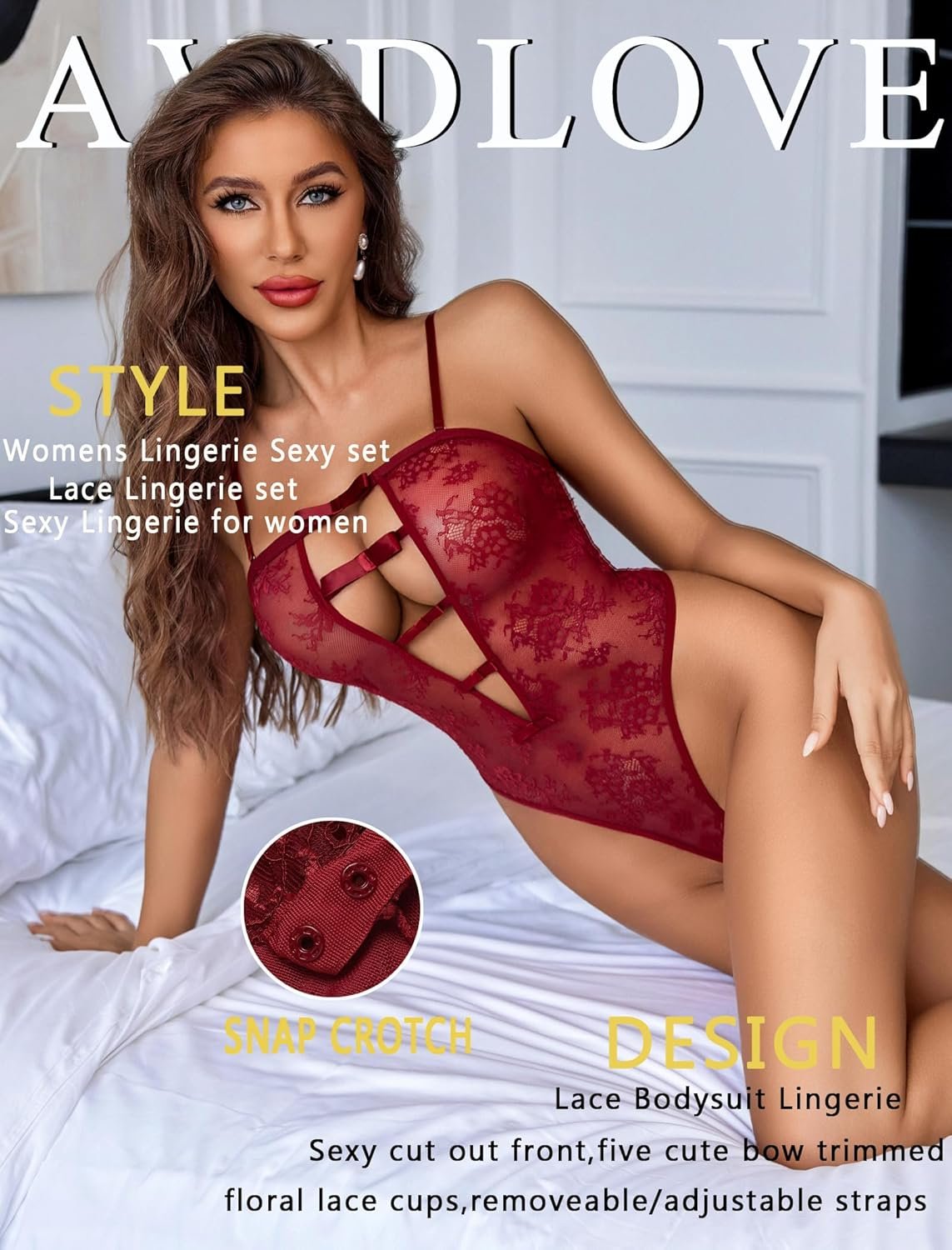 Avidlove Women Sexy Lingeries Deep V Teddy Lingerie Lace Bodysuit Hollow Out One Piece Mini Babydoll