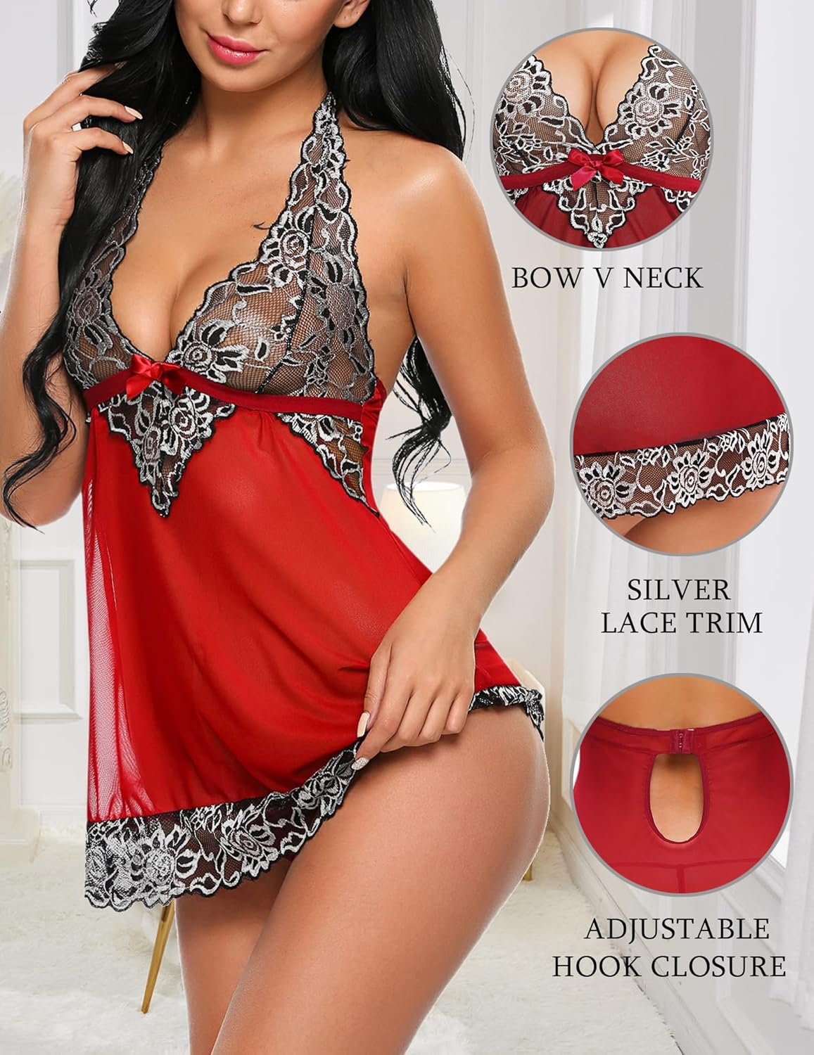 Avidlove Women V-Neck Lingerie Lace Babydoll Mesh Chemise Nightwear Outfits S-4XL