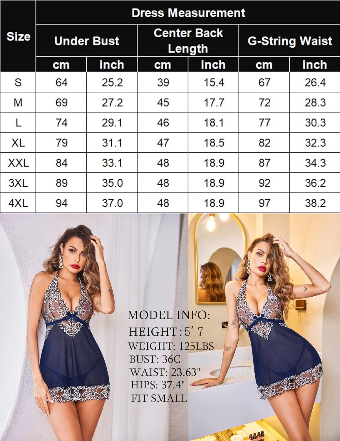 Avidlove Women V-Neck Lingerie Lace Babydoll Mesh Chemise Nightwear Outfits S-4XL