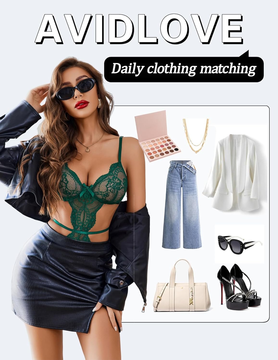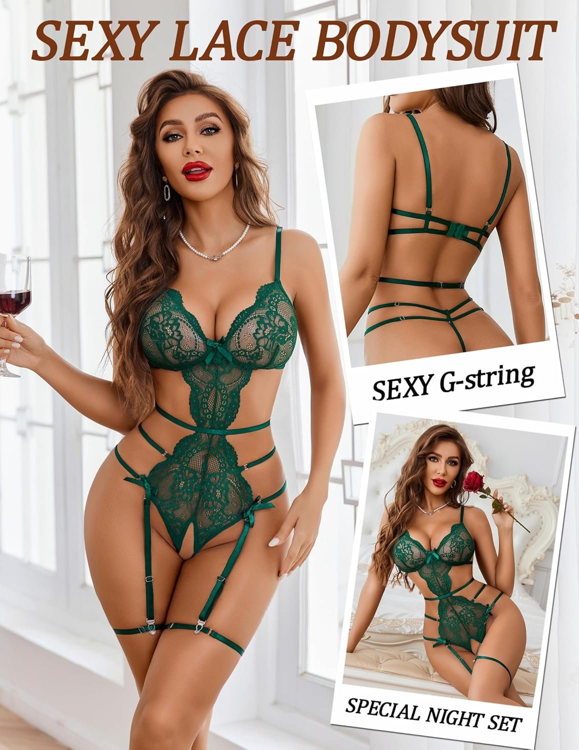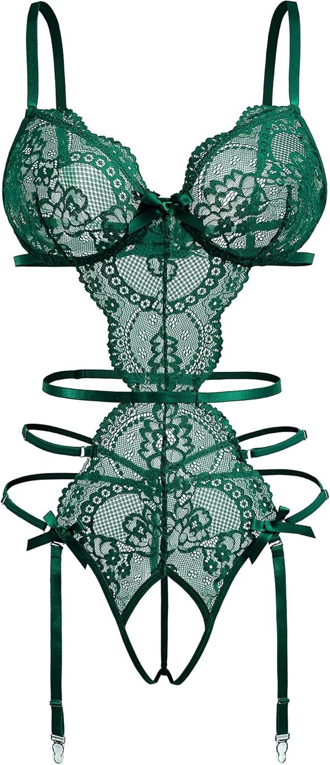 Avidlove Women’s Deep V Teddy Lingerie Sexy Lace Bodysuit Cut Out Garter Lingerie Sets