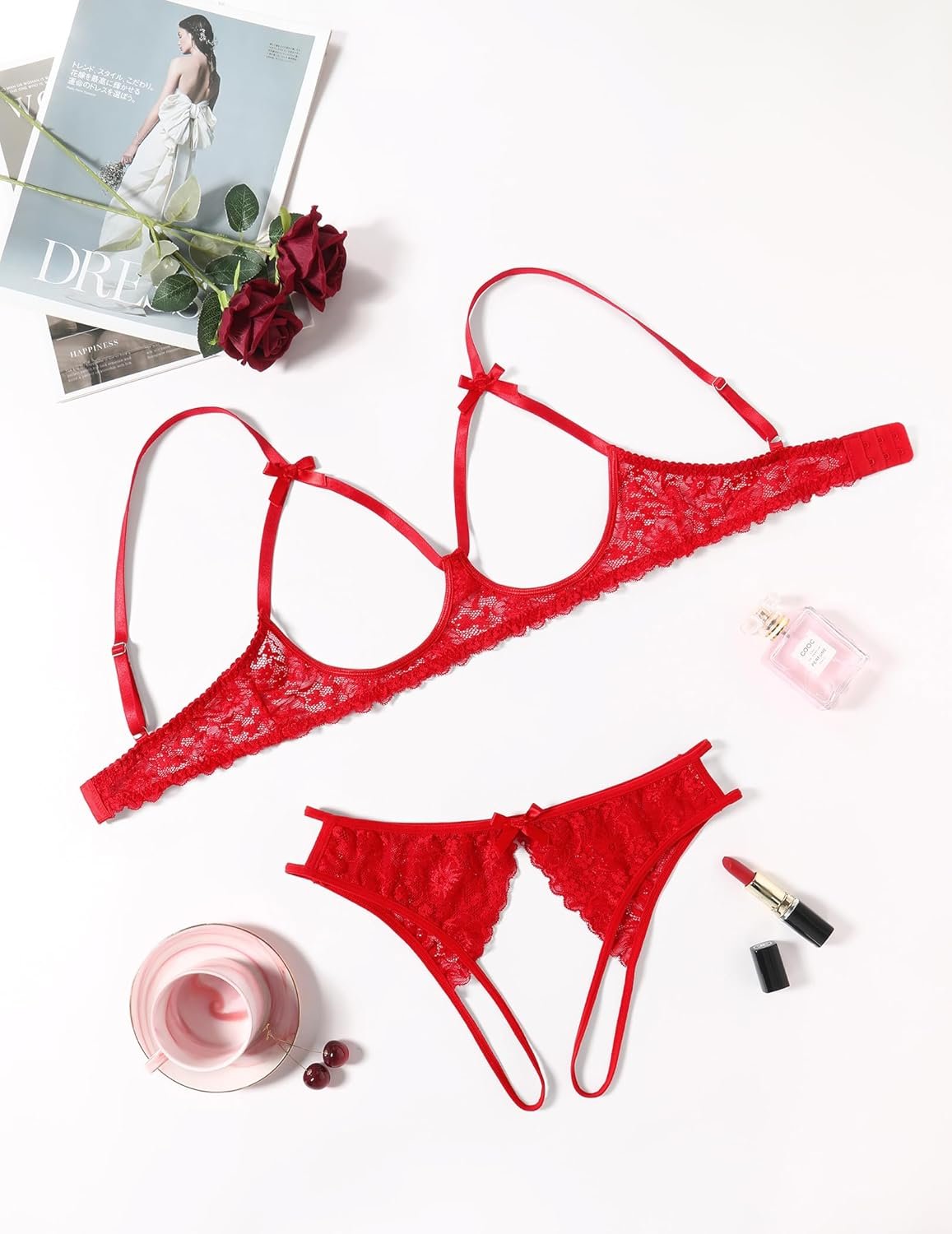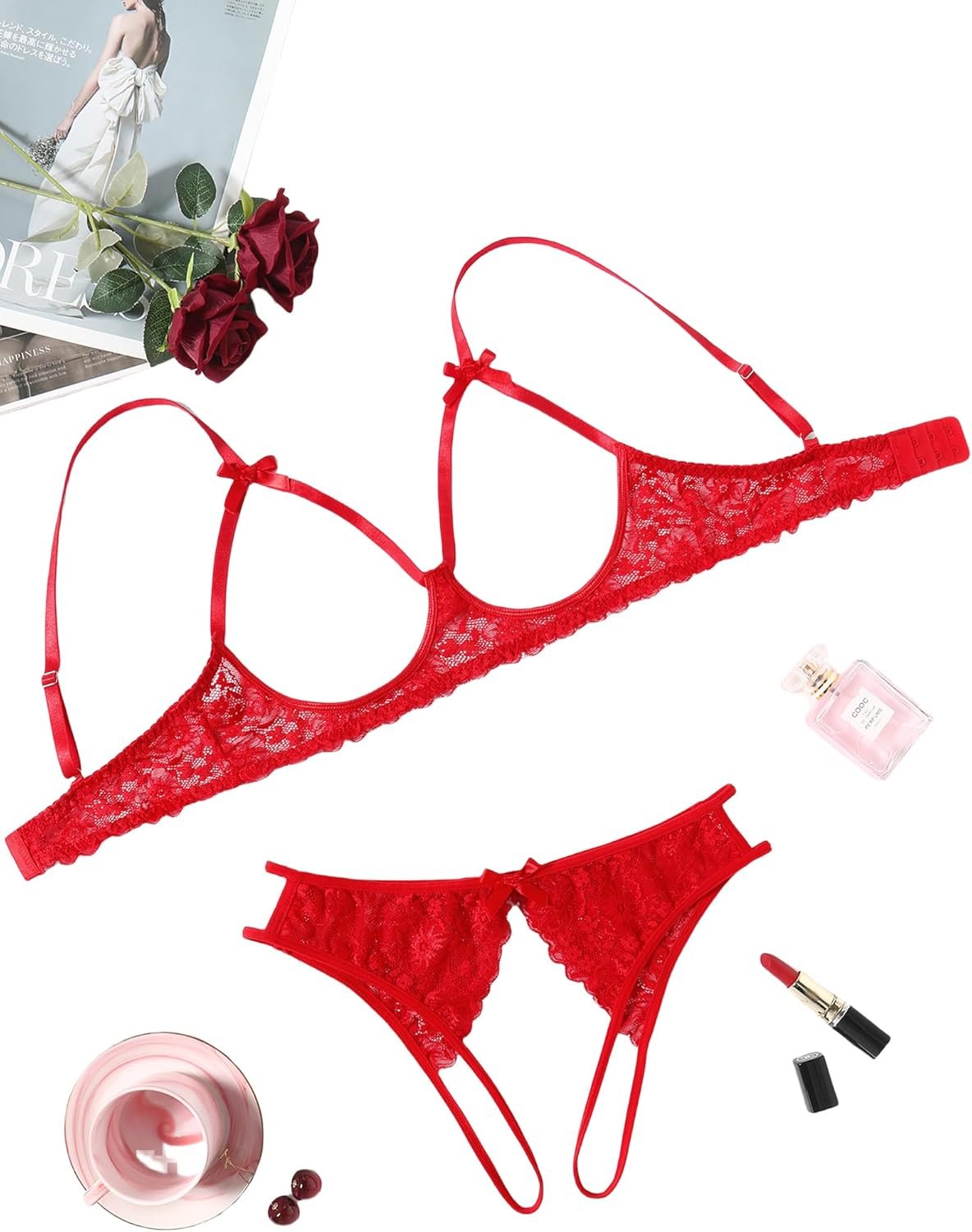 Avidlove Women’s Exotic Lingerie Sets Naughty 2 Pieces Bra Panty Set Sexy Cutout Lace Lingerie