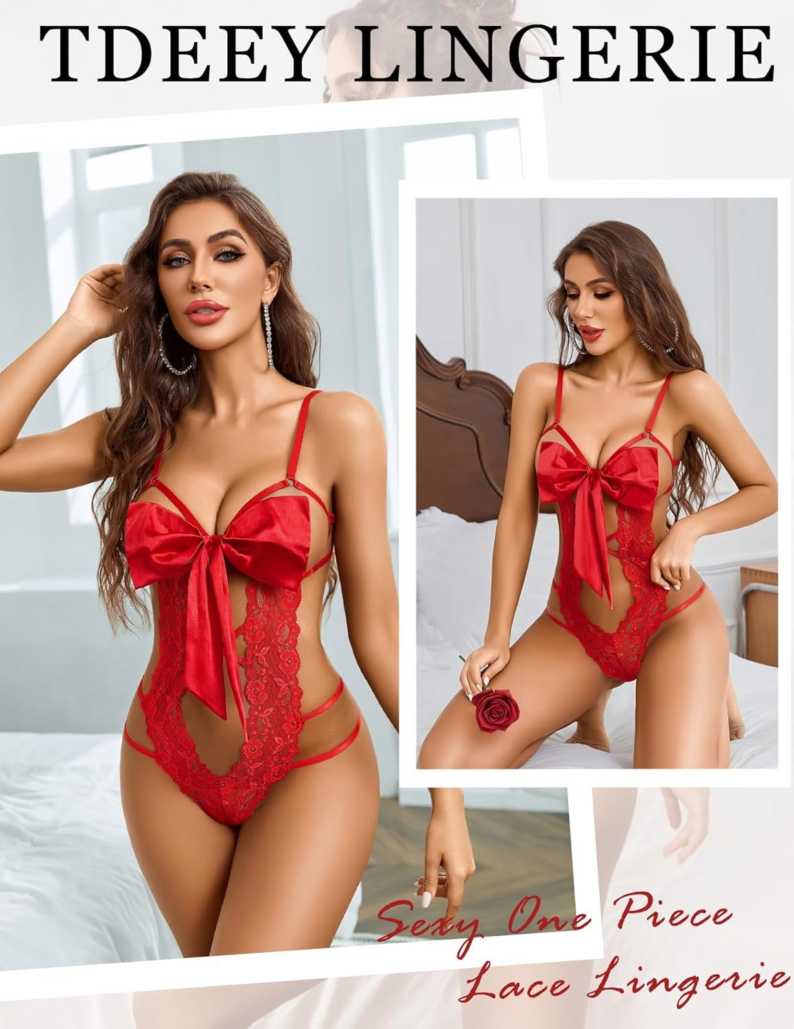 Decoration: Lace, Bow Tie, Deep V Neck