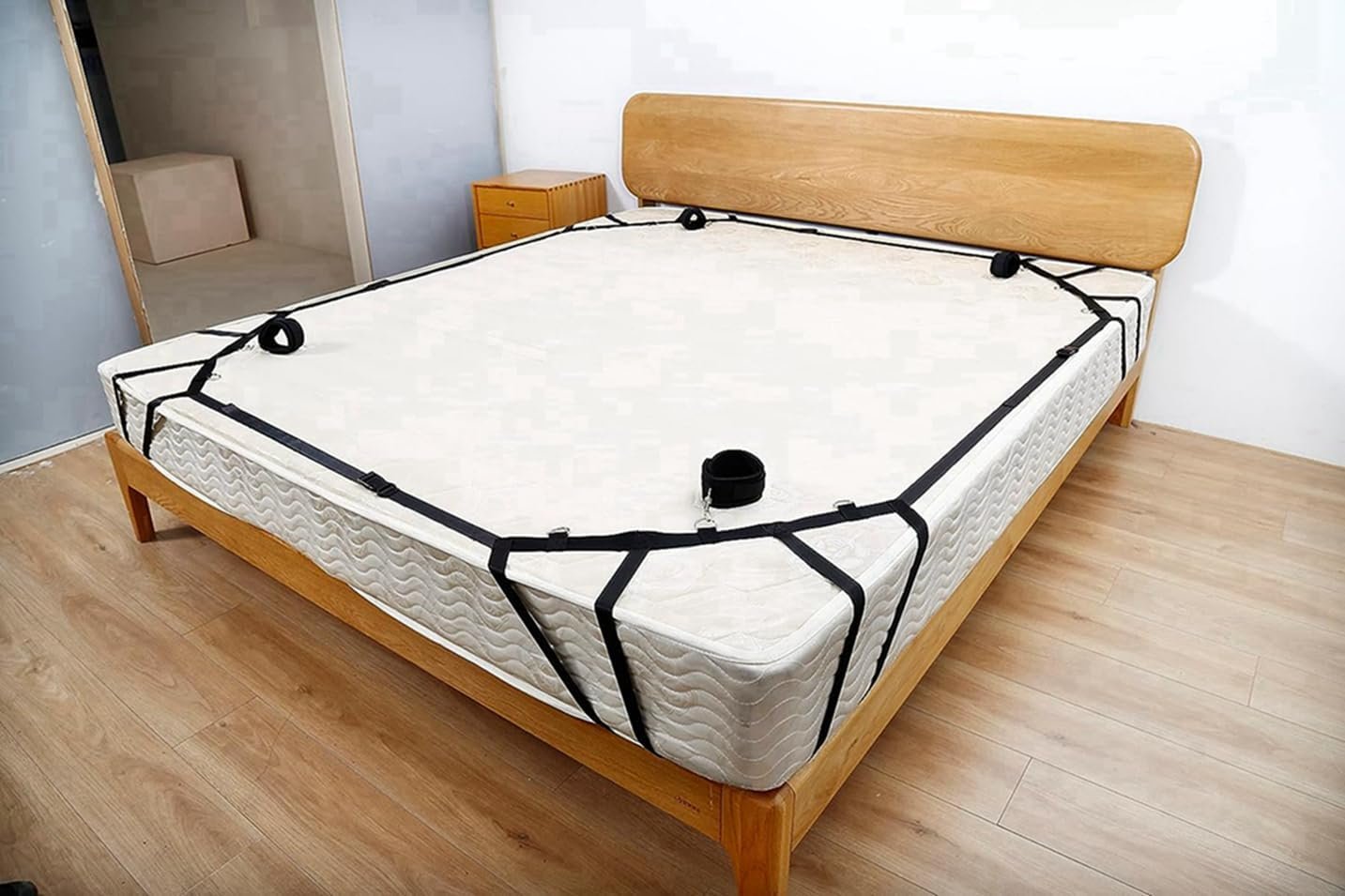 The size of the bed restraints can be fully adjusted, making it suitable for king beds.