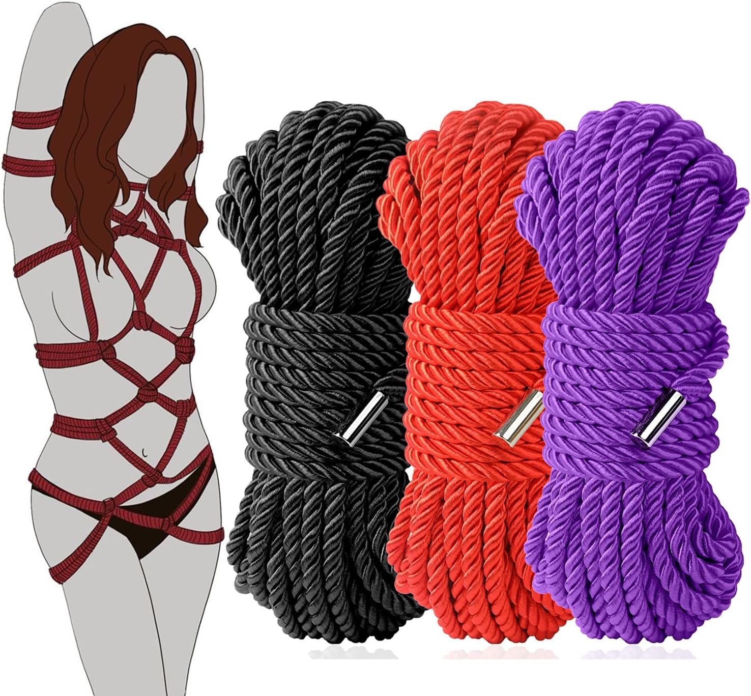 BDSM Bondage Shibari Sex Rope – BDSM Beginner Set Kit Adult Fetish Bondage Restraints Set Sex Toys for Women, Men & Couples, 32 Feet 8MM (3 Cloors)
