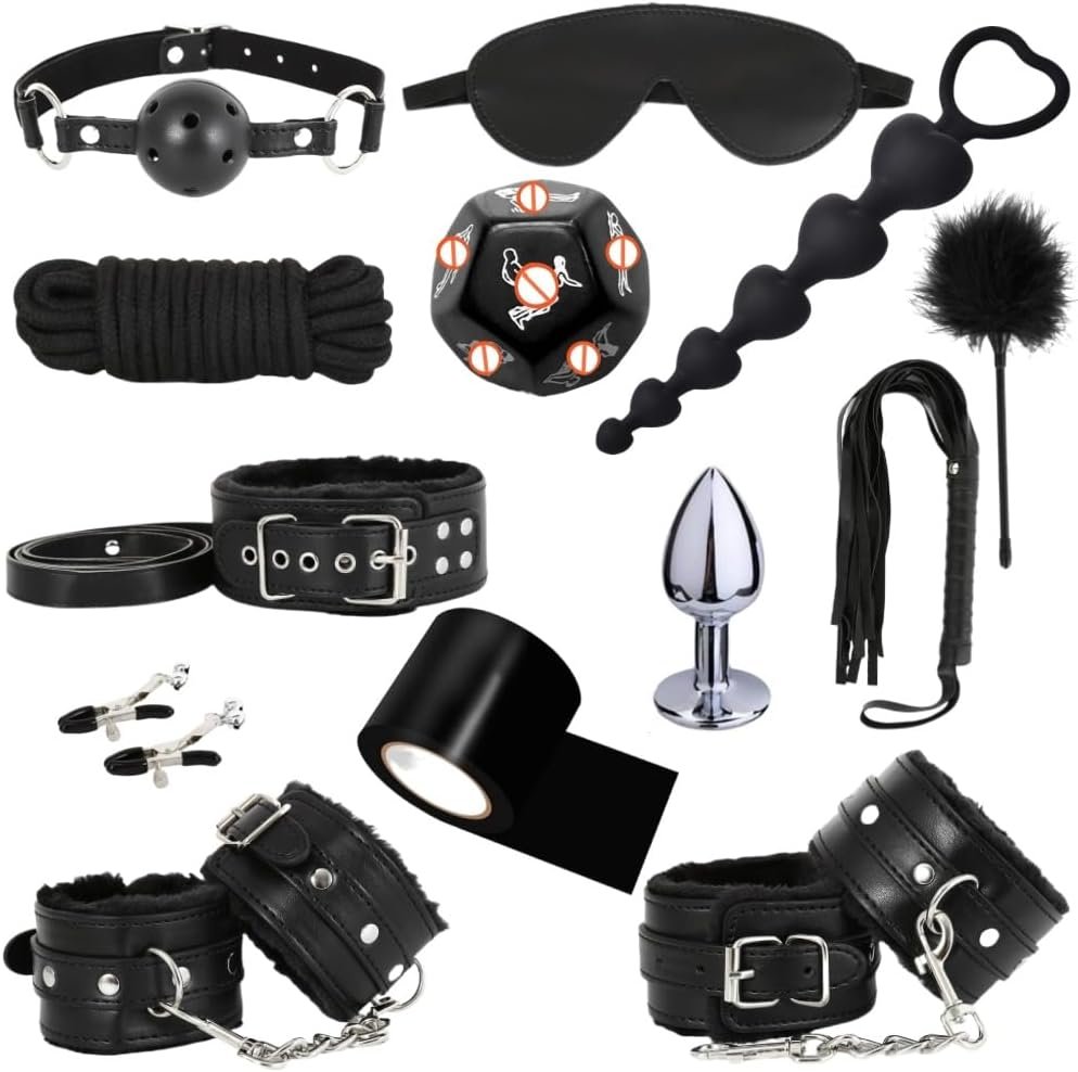 BDSM Restraints Bondage Kits 13 Pcs Sex Toys for Beginner Handcuffs Ankle Cuffs Collar Blindfold Anal Toys Play Adult SM Games for Couples