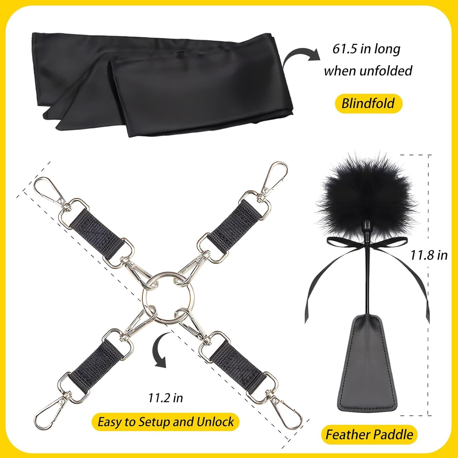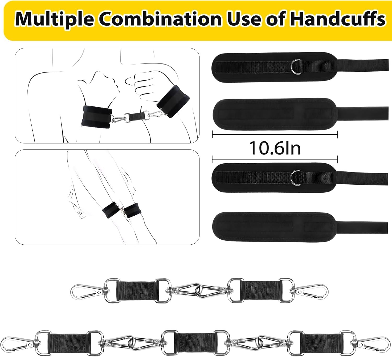 【Adjustable Versatility BDSM 】Disassembles completely and can be used as individual wrist and ankle cuffs, to explore more positions and pleasure, offers a high level of customization, allowing users to easily adjust the restraints to fit various body sizes and shapes. The adjustable straps ensure a comfortable yet secure experience, catering to both beginners and experienced users