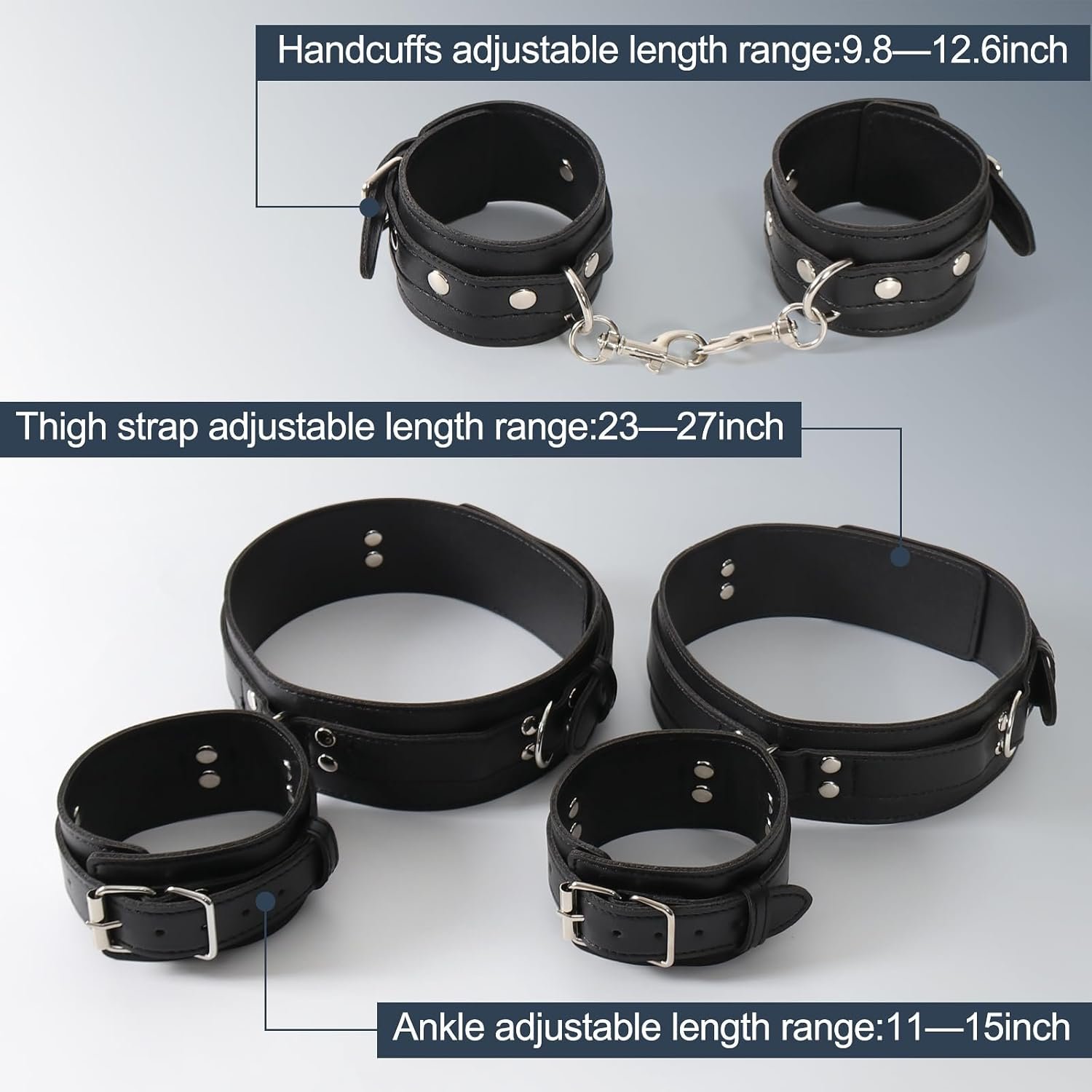 Designed for Beginners to Advanced Players: Whether you’re a beginner or an experienced player, this bondage restraints kit is easy to master. This three-in-one set of adjustable leg straps and handcuffs allows you to customize the level of restraint, making it suitable for novices and experienced enthusiasts alike