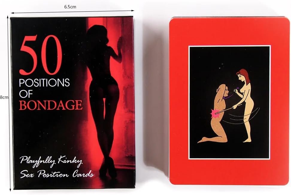 Sexual Bondage and Sex Position Fun Cards, with 50 different positions that will keep you going for a month, adding excitement and fun to a couple’s sex life.