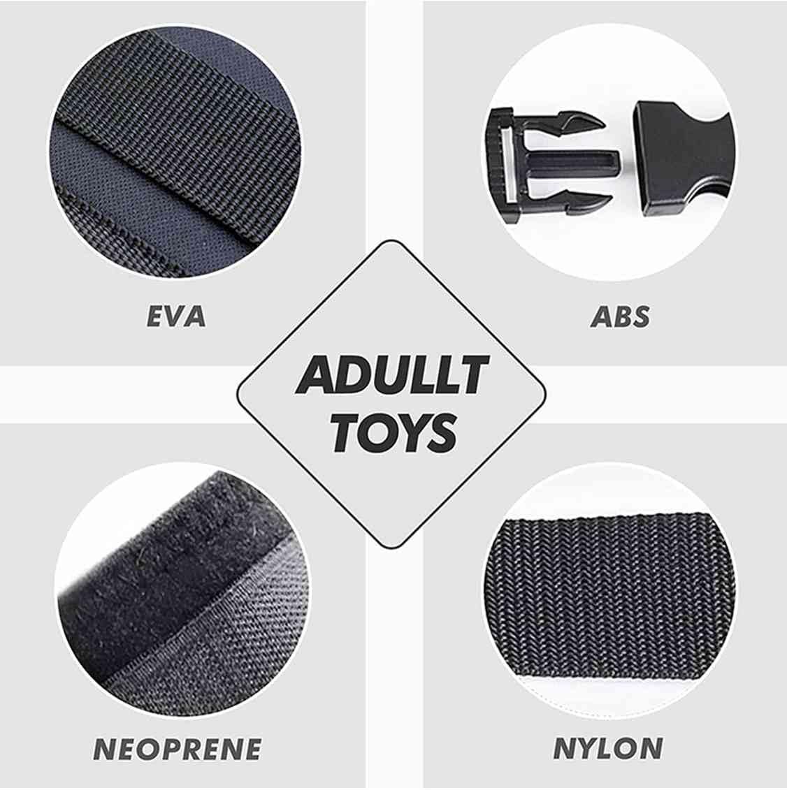 Adjustable in size with buckles, wrist cuffs with Velcro for adults bedroom.The leg harness can be adjusted freely and two thigh cuffs connect to a back piece that Makes you feel comfortable,bring more stimulation and pleasure to your sexual life