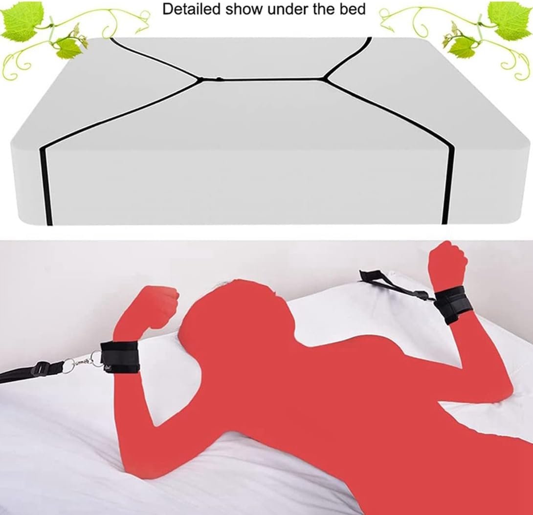 Bed Restraint for Queen Size Bed Straps for Adult Play King Size Bed Ties for Couples Wrist and Ankle Sex Play Handcuffs BDSM Furniture Bondage Restraints Sex Set for Bed Bondaged Kit Women Sweatshirt