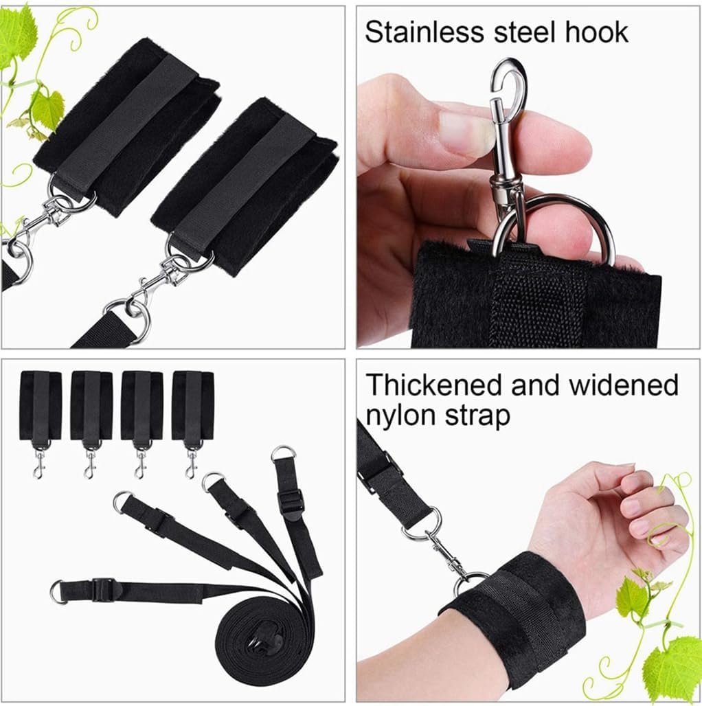 đź’• Premium Material-The material of the bed restraints sex system is odorless, non-toxic, skin-friendly. The sex handcuffs are fuzzy and it will not hurt your ankles or wrist with long-time sex games. With the sturdy restraints straps, your partner could not get rid of your control but begging for more