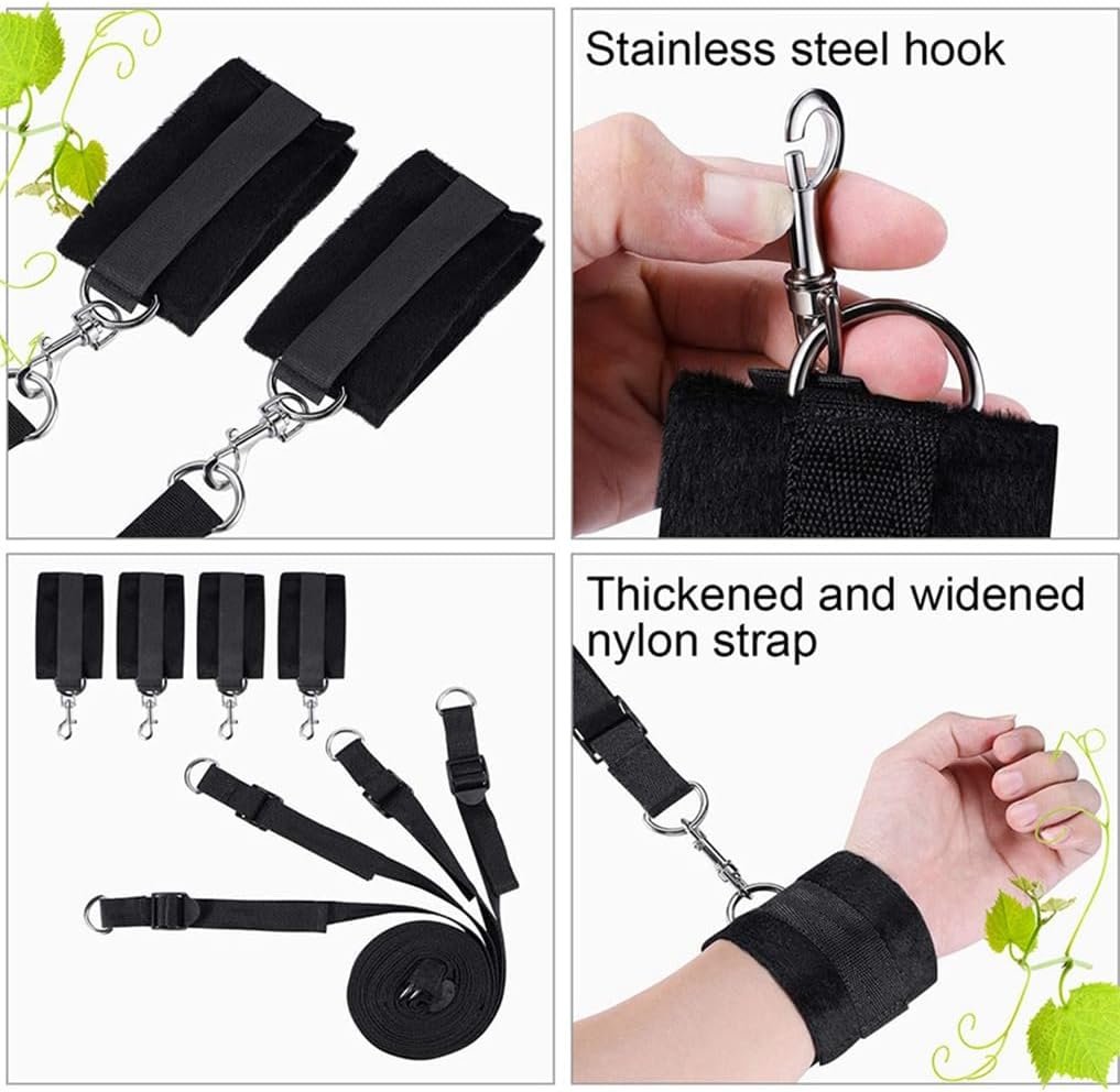 đź’• Easy to use and install- This bed bondage Kit comes with advanced design .You just need to install the four corners of the bed instead of lifting the mattress, which enables yourself to quickly fix the bed straps on the bed, no need of helping. and each bed strap slips on with ease for speedy use.