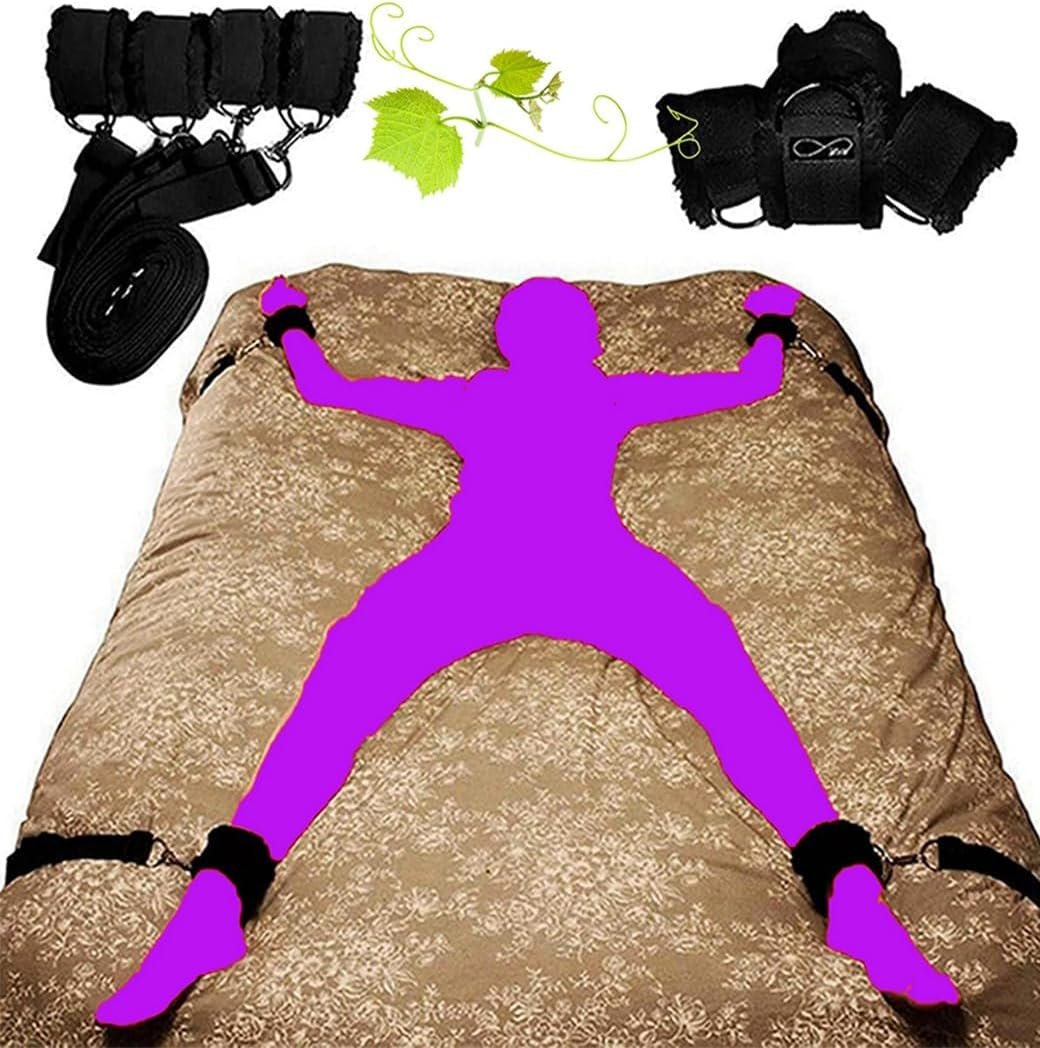 đź’• Premium Material-The material of the bed restraints sex system is odorless, non-toxic, skin-friendly. The sex handcuffs are fuzzy and it will not hurt your ankles or wrist with long-time sex games. With the sturdy restraints straps, your partner could not get rid of your control but begging for more