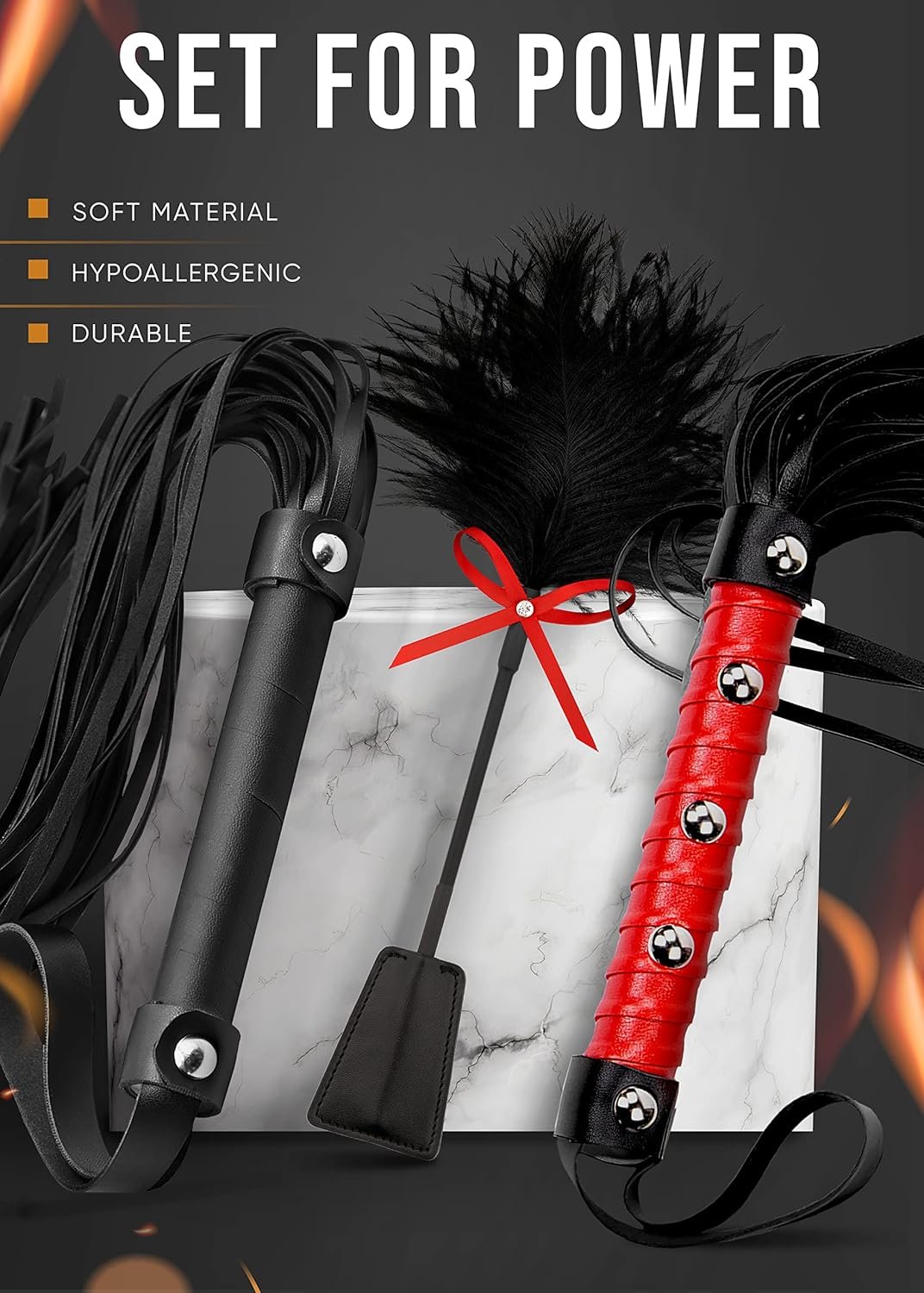 [ALL YOU NEED] It includes: black crop for sex, red sex whip and a feather tickler for couples.