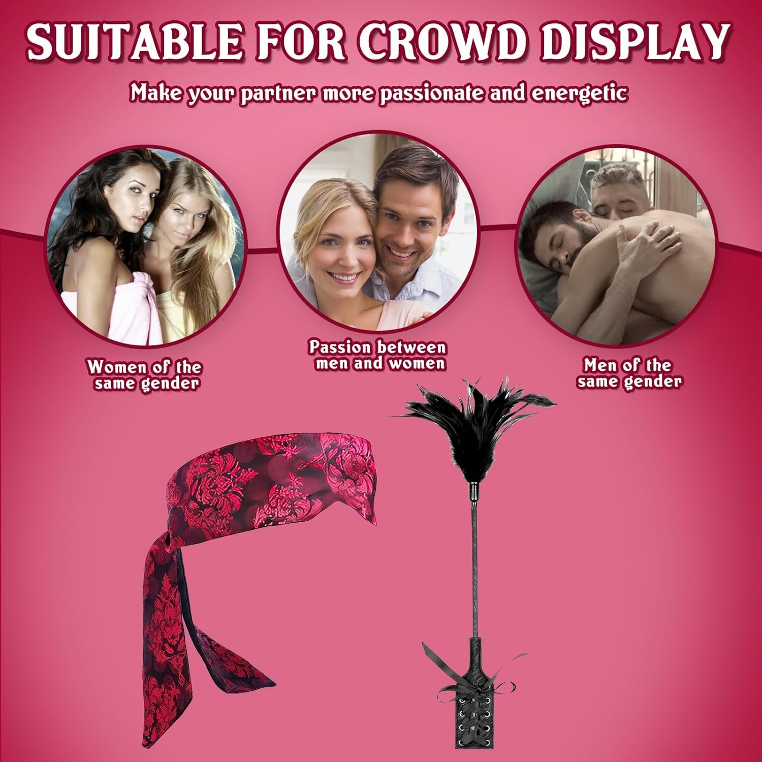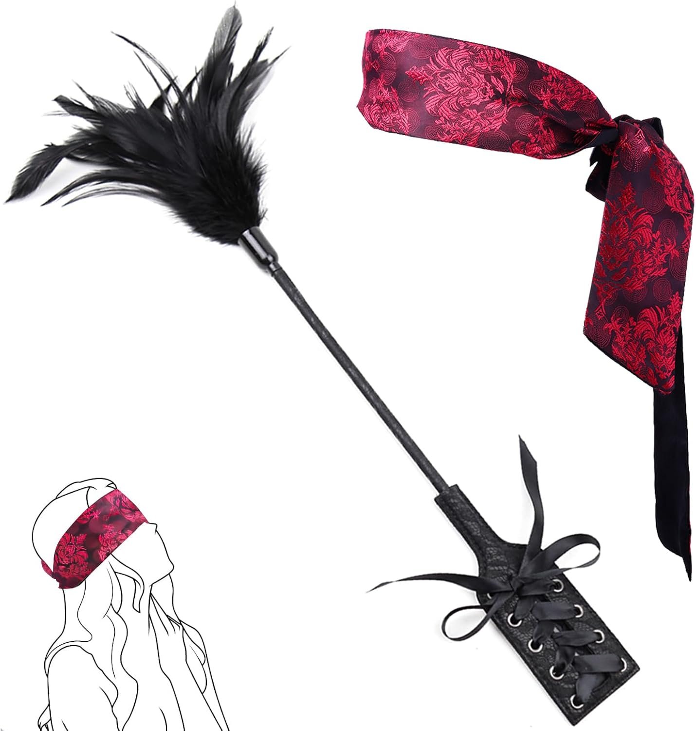 Blindfold for Adults Couples, Feather Ticklers Teasers with Soft and Smooth Touch, Adjustable Fit, Spanking Function for French Tickler, Passionate Encounters, Intimate Pleasures