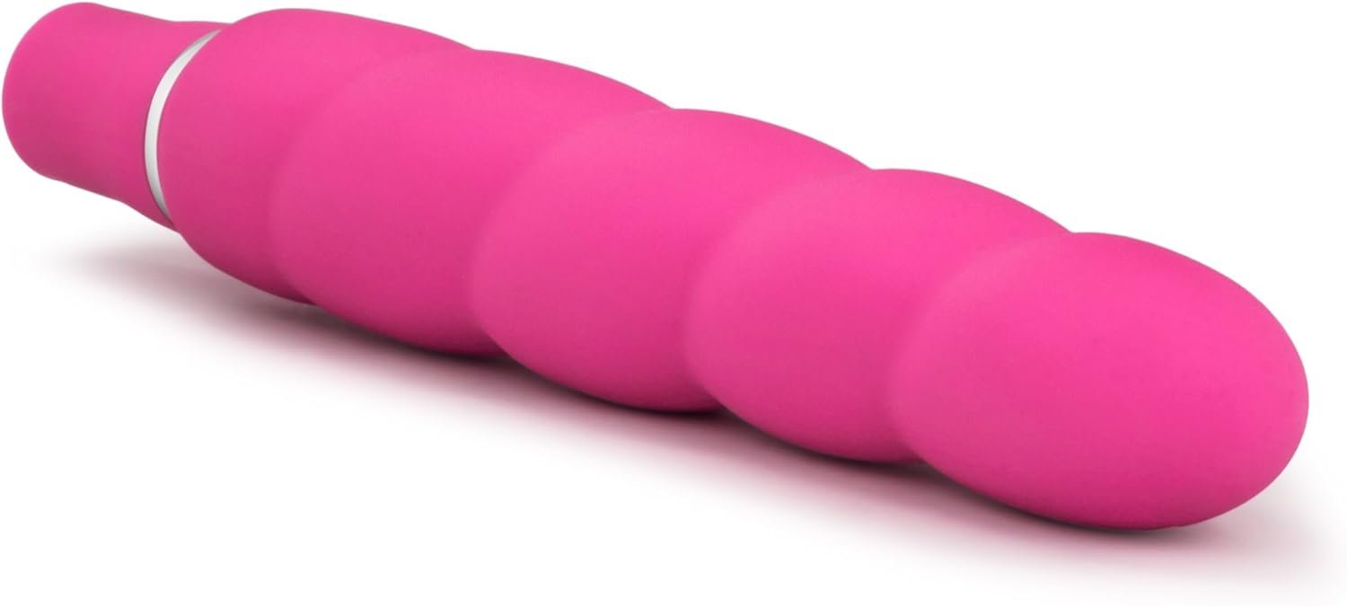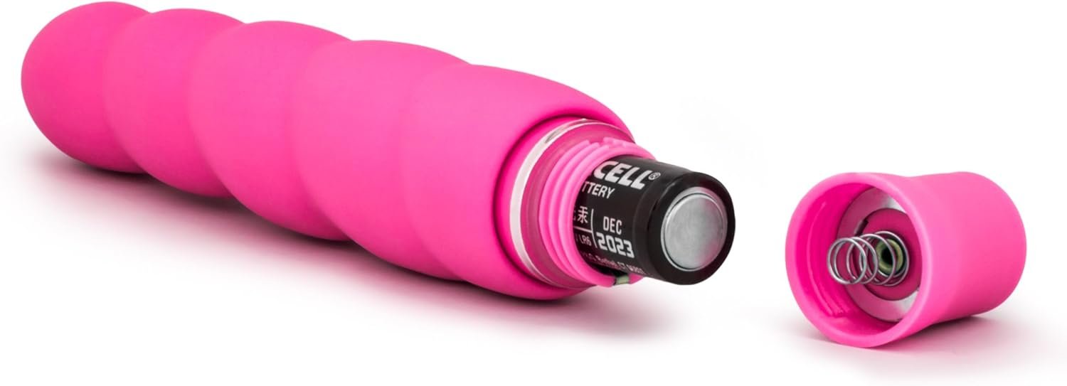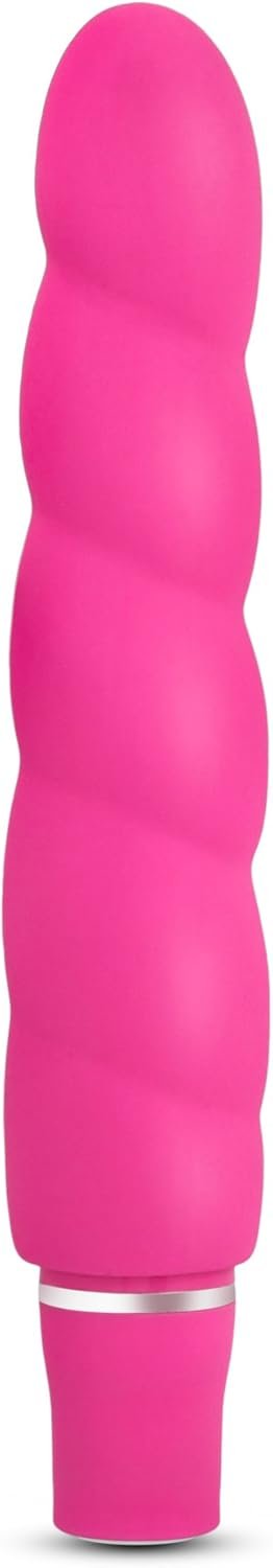 Blush Novelties Luxe Anastasia – 6 1/2 Inch 10 Vibrating Spiral Platinum Silicone AA Battery Powered Vibrator – Ribbed Stimulator – IPX7 Submersible Waterproof – Sex Toy for Women Couples – Pink