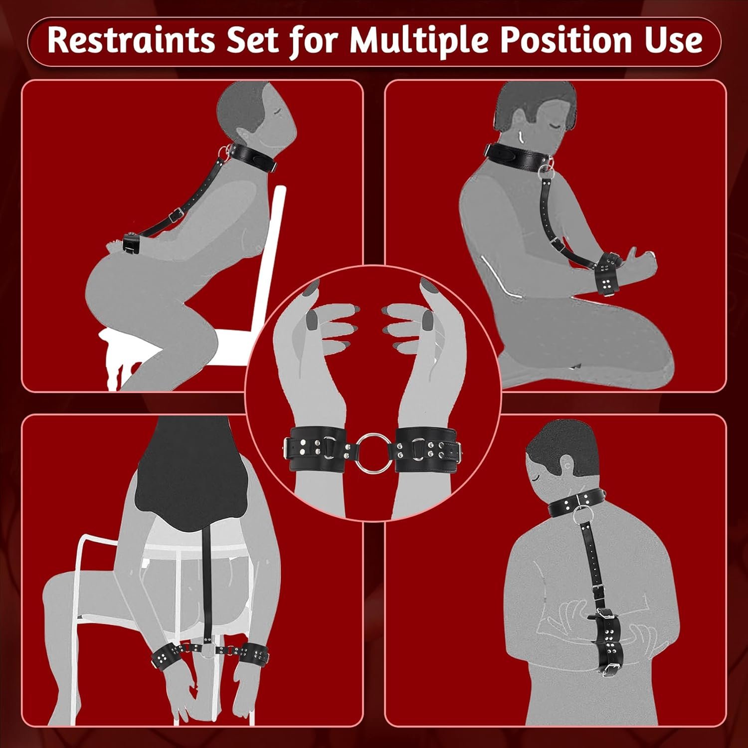 Fully customized BDSM Restraints: The adjustable sleeves provide a perfect fit, while the locking buckles empower you to reinforce your dominance. The easy-to-use collar, elegant leather handcuffs, and sex straps leave your slave no room for escape and entirely at your mercy